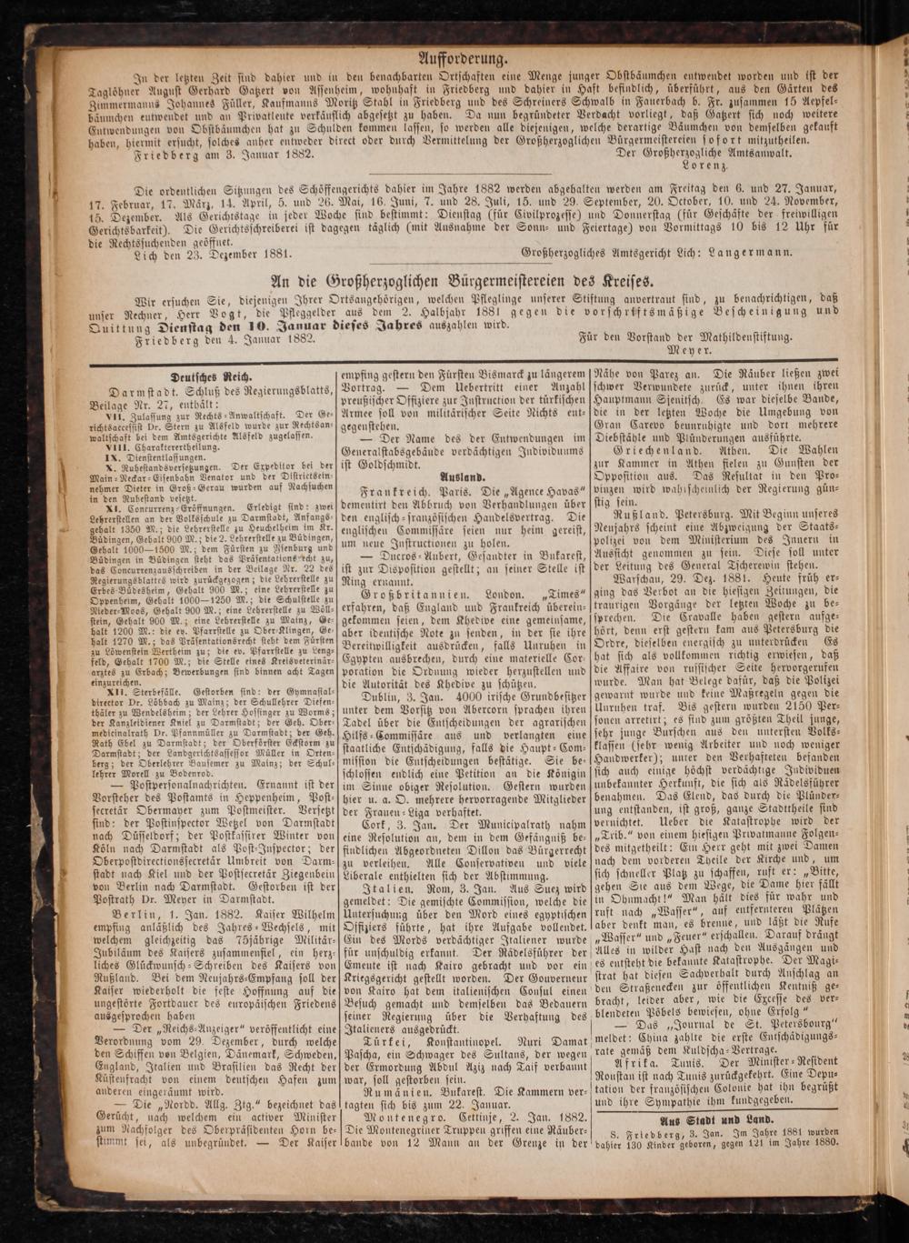 haben, hiermit ersucht, solches Friedberg am 3. Januar 1882.