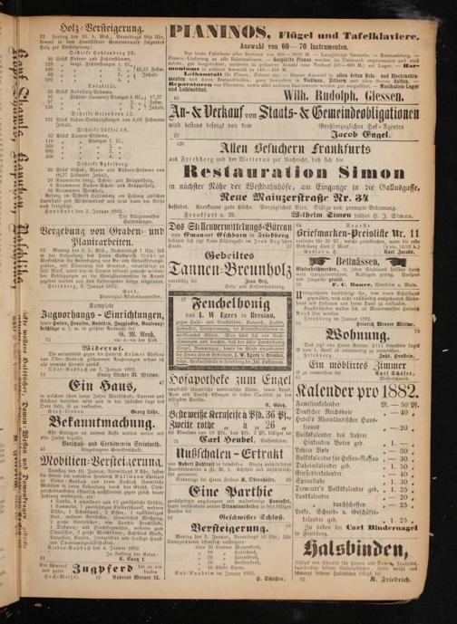 8 Sp ring. Prospeet den Beding an die Wenigstnehmenden in Accord uniß, gratis K N Prosp gegeben werden und sind Lusttragende hierzu eingeladen. vorräthig Jean Betz, and 5 5 1 0 Bauer, Wertheim a. Main. Friedberg, 6. Januar 1882. 0 Holz- und Kohlenhandlung. 3——— Greb, NN 8 9 U terzeich. i Schulhaus Provinzial⸗Wiesenbaumeister. gegenüb— au isgebautes Wohn⸗ enchelhonig a Komplete F— 1 Kauf rmeister 4 8 Heinrich aj 2 Reuf n Zugvorhangs- Einrichtungen, von I. N. Egers in Uresluu, K sowie Halter, Fransen, Rosetten, Zugglocken, Rouleaux⸗ gegen Hals- und Katarrh, 4 81 Oeinrich Werner Wittwe. beschläge u. s. w. in größter Auswahl bei Hesserre⸗ t, Verschleimung, bei Kinderkrankk 79 G. M. Reuß, wirksamstes Mittel. Man hüte sich vor Nac Wohn ung. 73 vis-A- vis der Post. ahmungen und beachte, daß der achte Fend.„ink bewohnte Logis Widerruf. Siegel, Namenszug, sowie im Glase eing ist 4 Ari N zu„