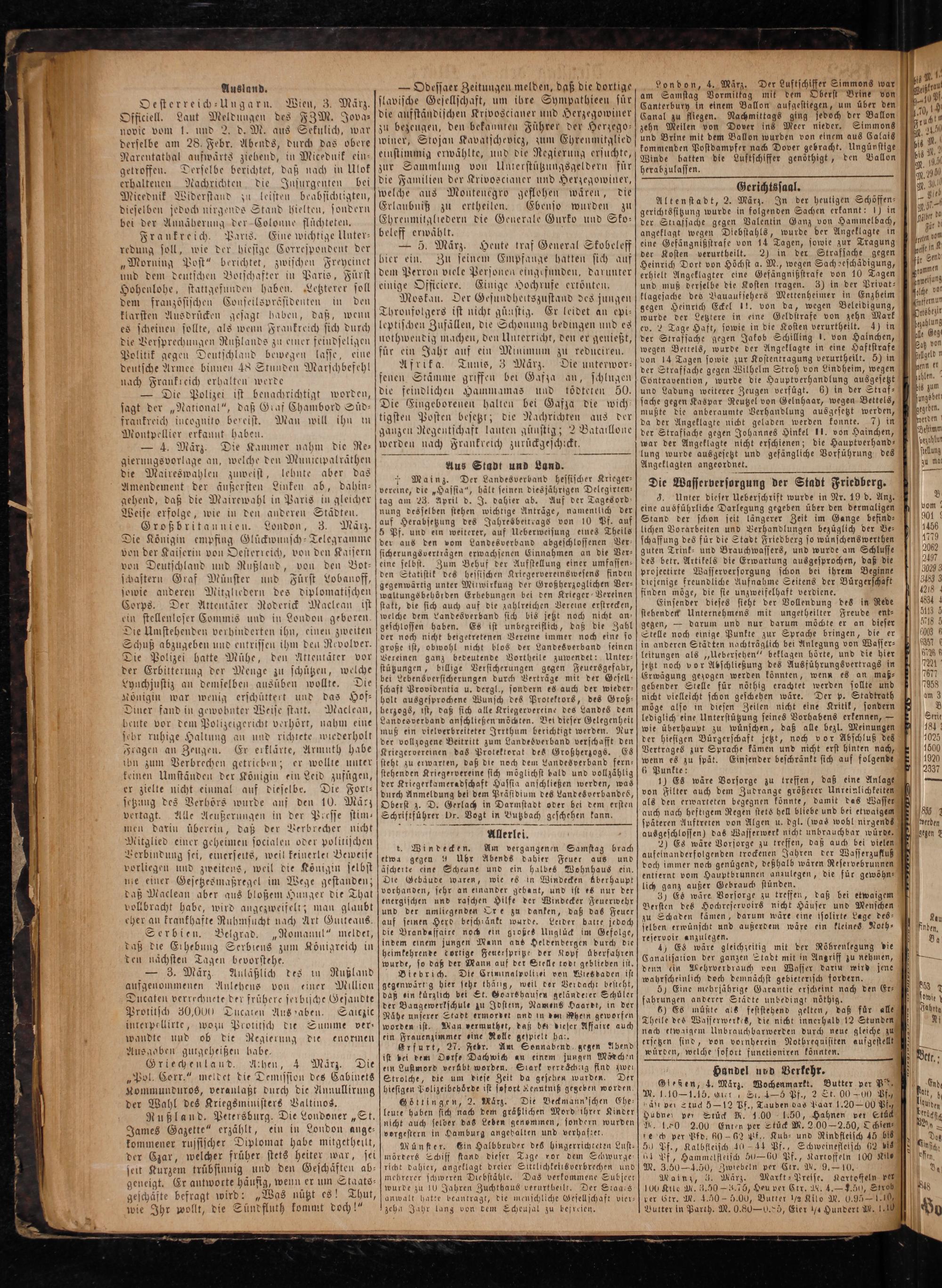 Ausland. Oesterreich⸗-Ungarn. Wien, 3. März. Officiell. Laut Meldungen des FZ3M. Jova⸗ novie vom 1. und 2. d. M. aus Sekulich, war derselbe am 28. Febr. Abends, durch das obere Narentathal aufwaͤrts ziehend, in Miceduik ein—
