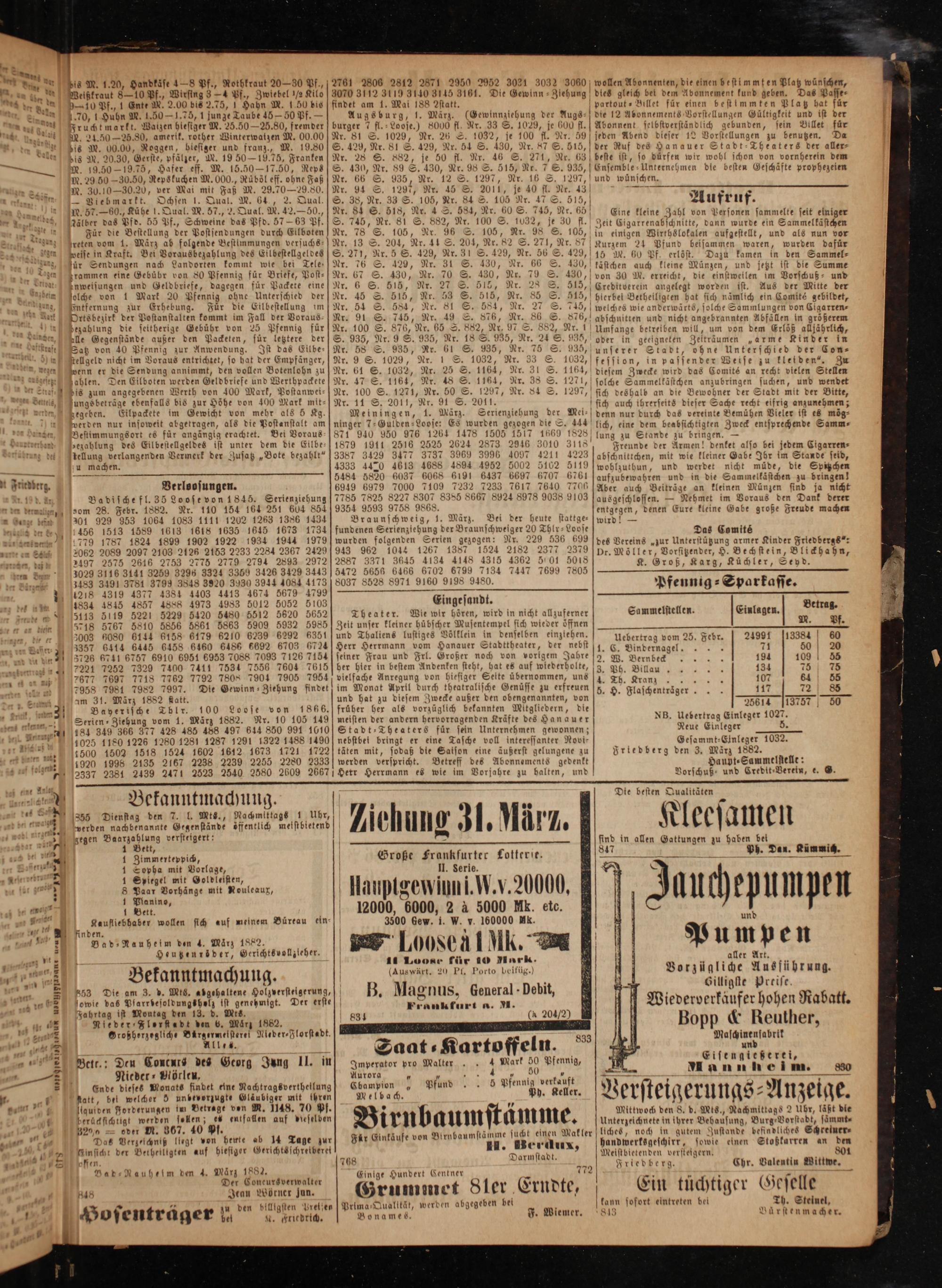 Gesammt⸗Elnleger 1032. Friedberg den 3. Marz 1882. Haupt⸗Sammelstellt: Vorschuß und Credit⸗Verein, e. G.