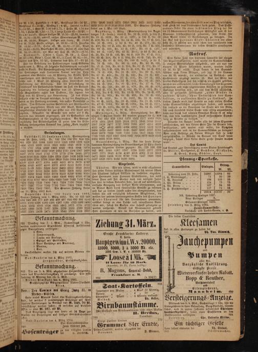 2761 2806 2812 2871 2950 2952 3031 3032 3060 3070 3112 3119 3140 3145 3161. Die Gewinn-Ziehung findet am 1. Mai 188 2statt.