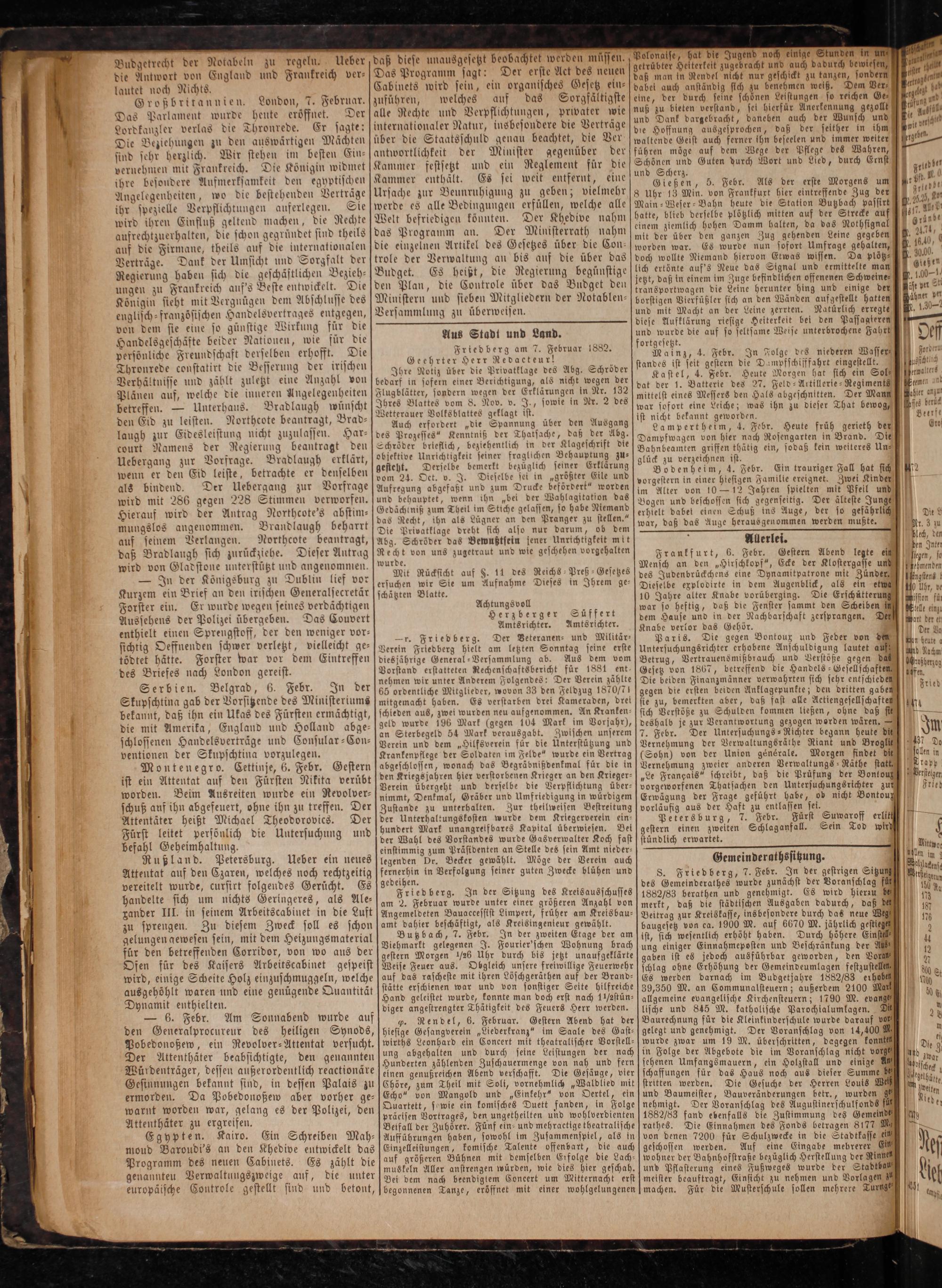 Friedberg am 7. Februar 1882. Geehrter Herr Redaeteur!