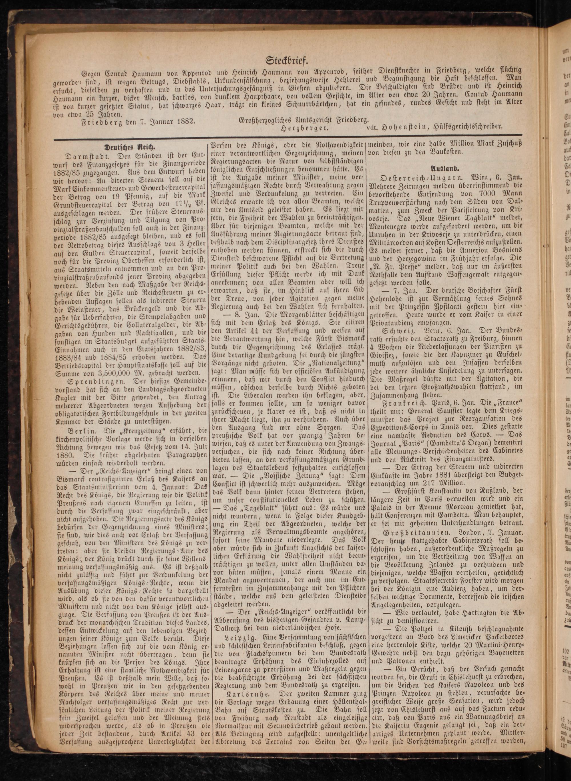 von etwa 25 Jahren. Friedberg den 7. Januar 1882.