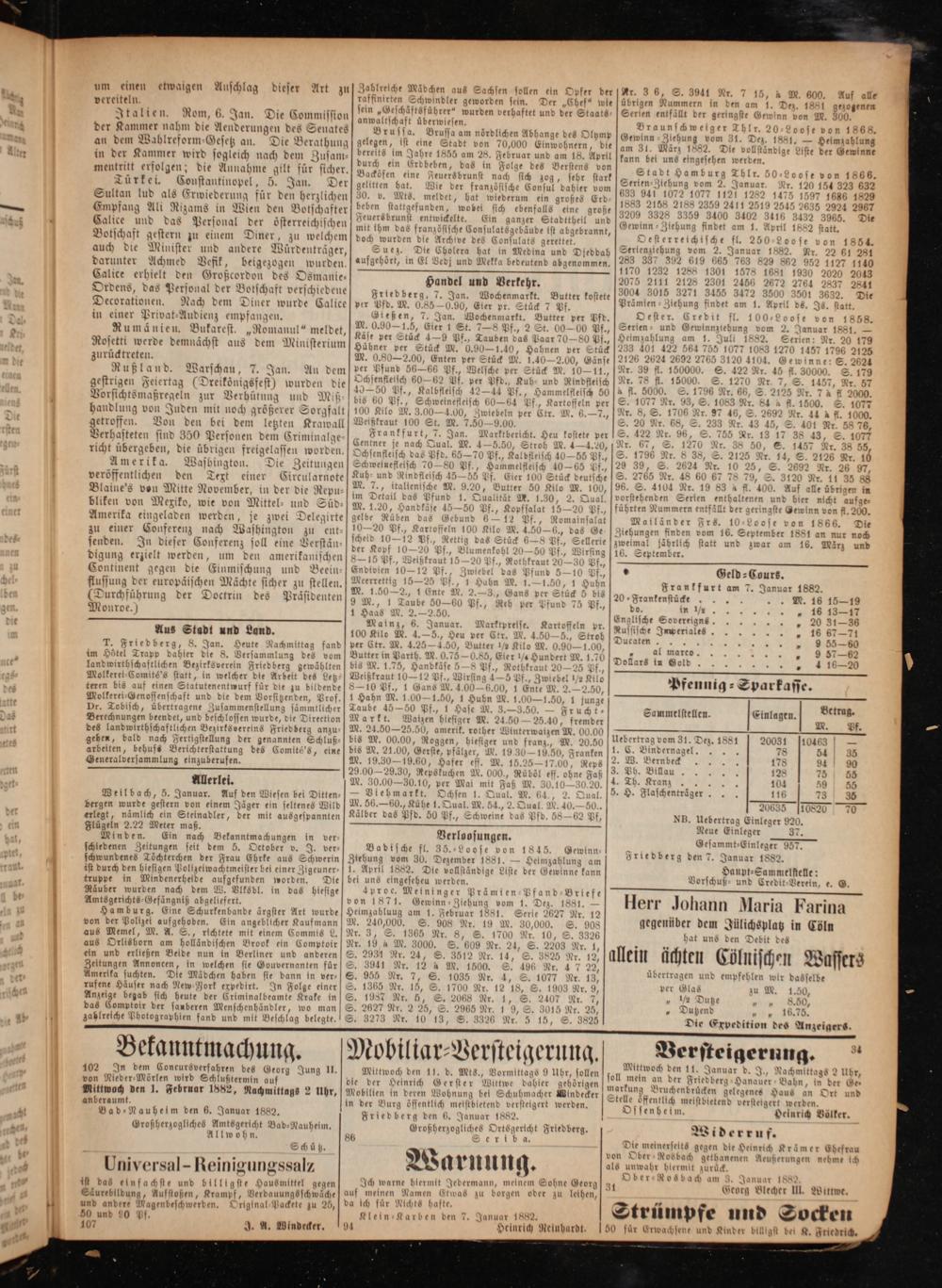 0 Geld⸗Cours. Frankfurt am 7. Januar 1882. 20⸗Frankenstücke 0 M. 16 15—19 do. NN ĩ ˙ P Englische Sovereigns.„ 20 31—36 Russische Imperiales.„% 16 67—71