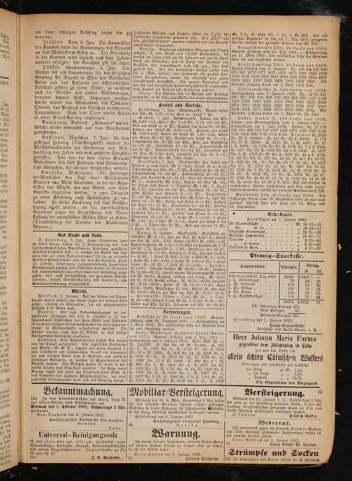 NB. Uebertrag Einleger 920. Neue Einleger 87. Gesammt⸗Einleger 957 Friedberg den 7. Januar 1882. Haupt⸗Sammelstelle: Vorschuß⸗ und Credit⸗Verein, e. G.