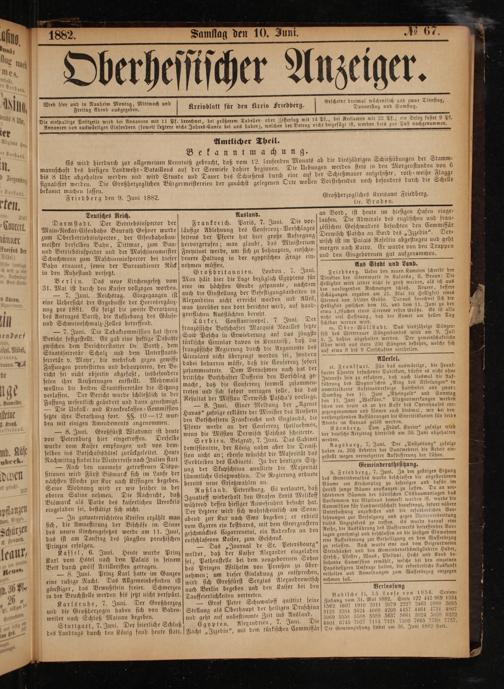 signalisirt werden. bekannt machen lassen. Friedberg den 9. Juni 1882.
