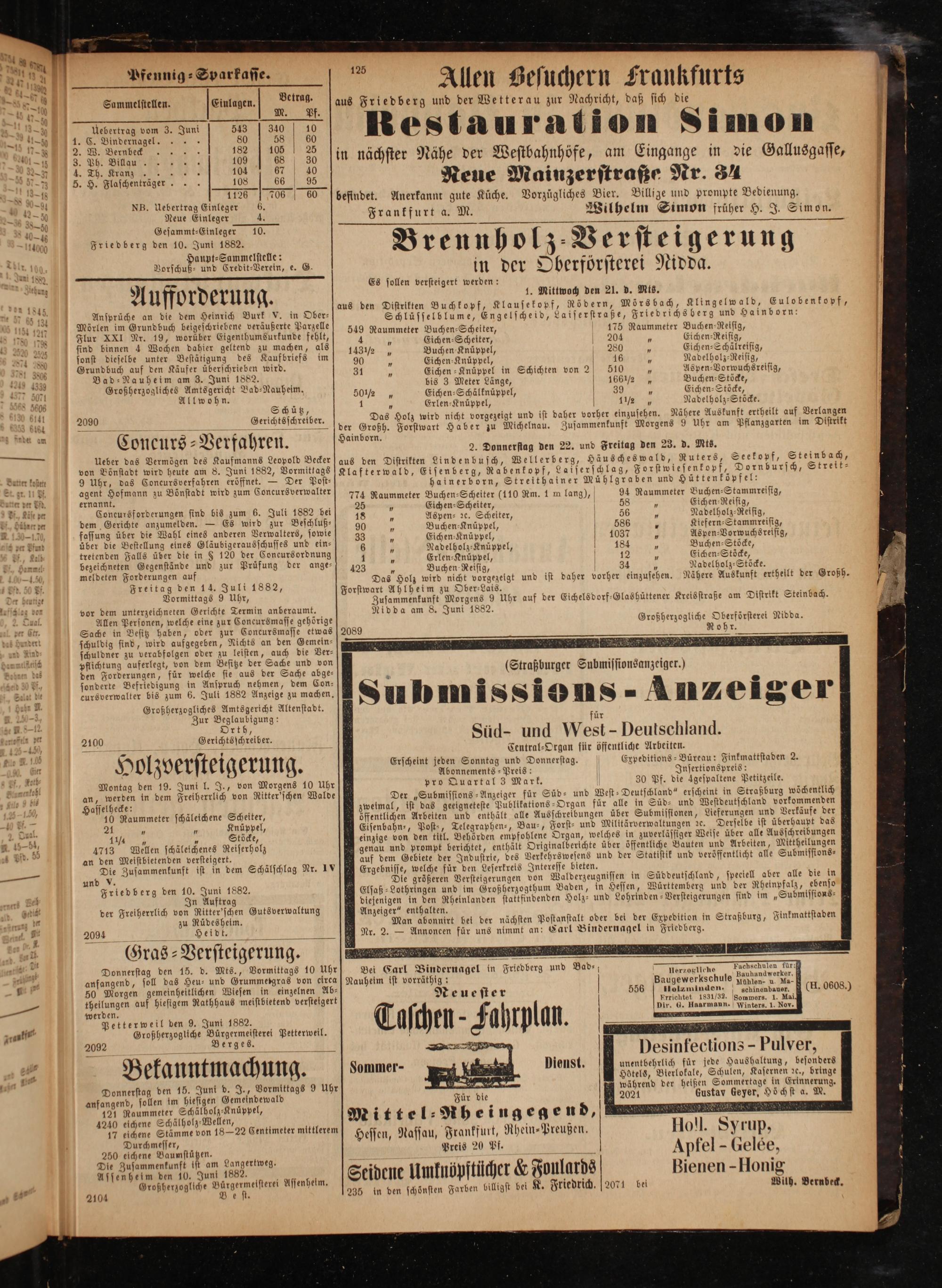 Gesammt⸗Einleger 10. Friedberg den 10. Juni 1882.