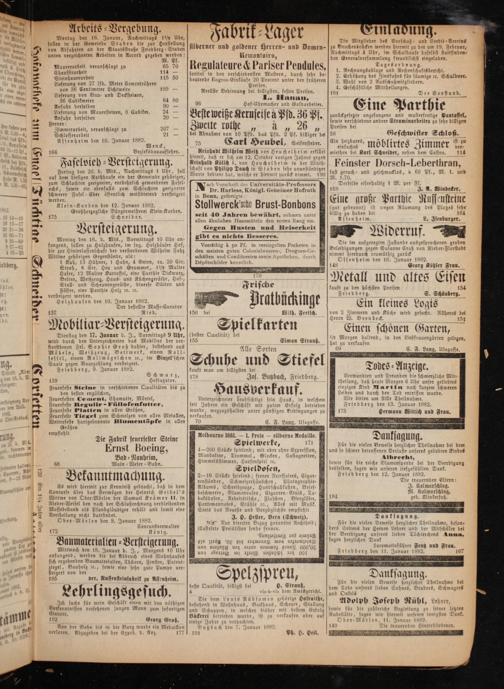 Friedberg den 11. Januar 1882. 167