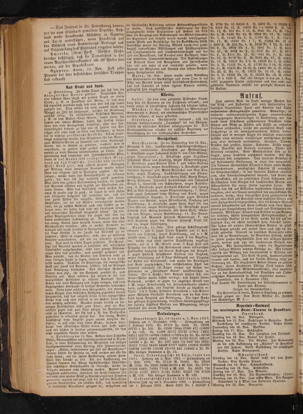 S. 9794 Nr. 10 50000 fl. S. 5082 Nr. 14 25000 fl. S. 6518 Nr. 15, S. 10985 Nr. 1 à 10000 fl. S. 748 Nr. 12, S. 953 Nr. 8 13, S. 6841 Nr. 19, S. 7244 Nr. 5, S. 8155 Nr. 10, S. 9954 Nr. 15, S. 10985 Nr. 7, S. 11143 Nr. 5, S. 11768 Nr. 3, S. 13475 Nr. 12, S. 16242 Nr. 1 7, S. 17054 Nr. 13 16 A 5000 fl. S. 592 Nr. 8, S. 3525 Nr. 6 20, S. 4458 6, S. 4620 Nr. 4, S. 5082 Nr. 4, S. 5088 . 10, S. 5634 Nr. 9, S. 5747 Nr. 18, S. 5873 . 1, S. 6314 Nr. 13, S. 6841 Nr. 9, S. 8045 12, S. 8179 Nr. 2, S. 9352 Nr. 13, S. 10435 . 18, S. 10525 Nr. 6 9, S. 10626 Nr. 8, S. 10985 . 2, S. 11525 Nr. 8, S. 11768 Nr. 5 14, S. 12468 . 11, S. 13475 Nr. 10 19, S. 14501 Nr. 8, S. 16242 . 20, S. Nr. 11, S. 13475 Nr. 10 19, S. 14501 . 8, S. 16242 Nr. 20, S. 16253 Nr. 18, S. 18647 Nr. 16 à 1000 fl. Auf alle übrigen in den am 1. Aug. 1882 gezogenen Serien enthaltenen und hier nicht auf⸗ geführten Nummern entfällt der geringste Gewinn von 60 Gulden.