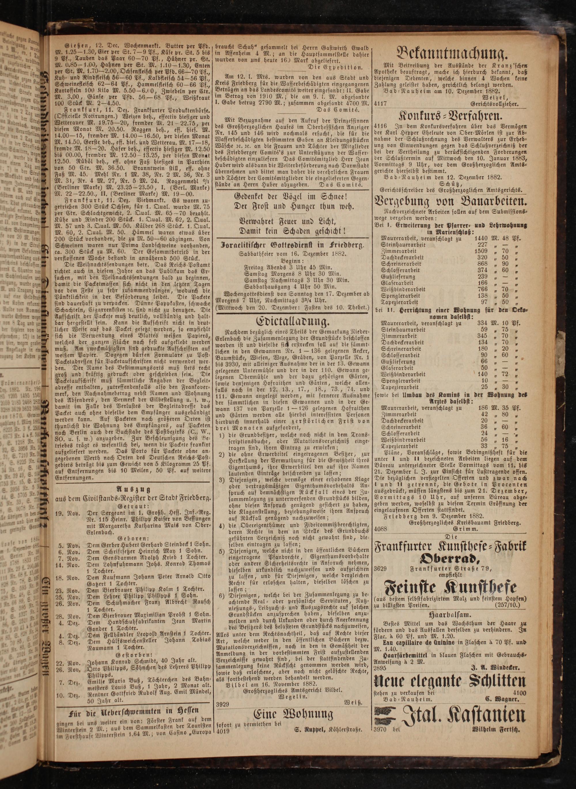 Jeraelitischer Gottesdienst in Friedberg. Sabbathfeier vom 16. Dezember 1882. Beginn: