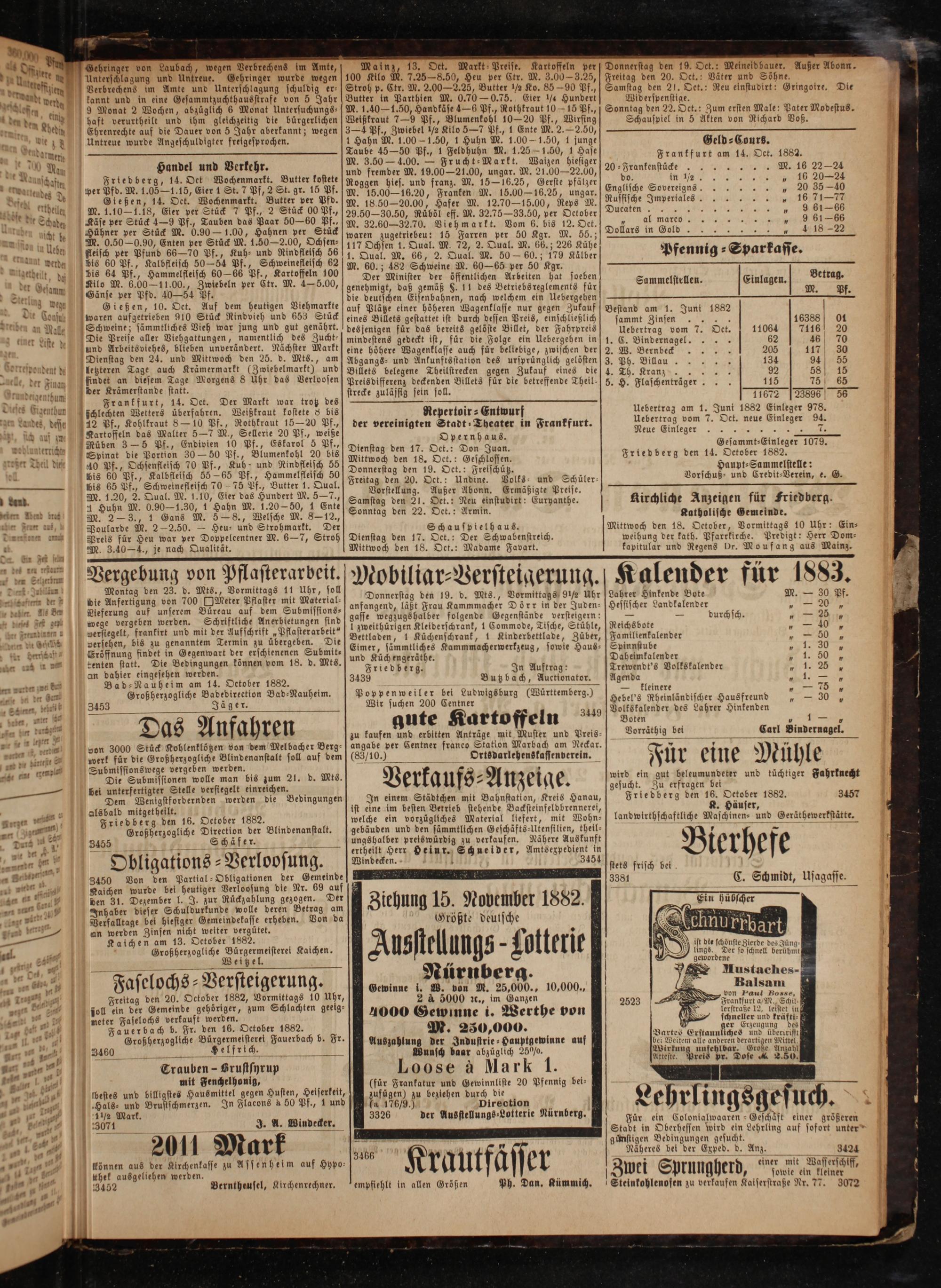 Friedberg, 14. Oet Wochenmarkt. Butter kostete per Pfd. M. 1.05—1.15, Eier 1 St. 7 Pf, 2 St. gr. 15 Pf.