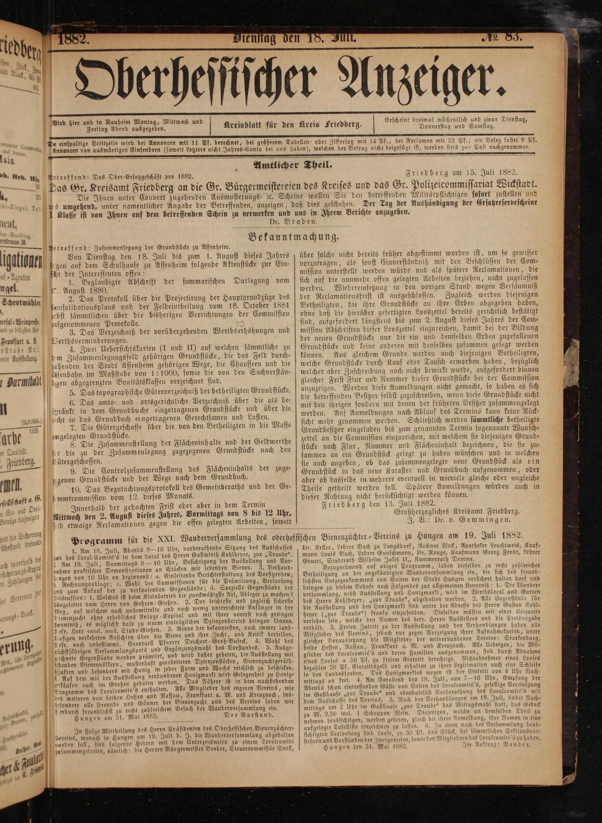 Friedberg am 15. Juli 1882.