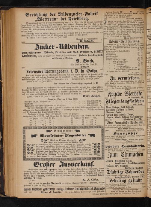 d. W. bei Herrn Wilh. Bernbeck; Hanau: Chr. J. Lossow; Vilbel: Hch. Müller; omburg: Fritz Nagel; Nidda: Julius Fischer. 2208
