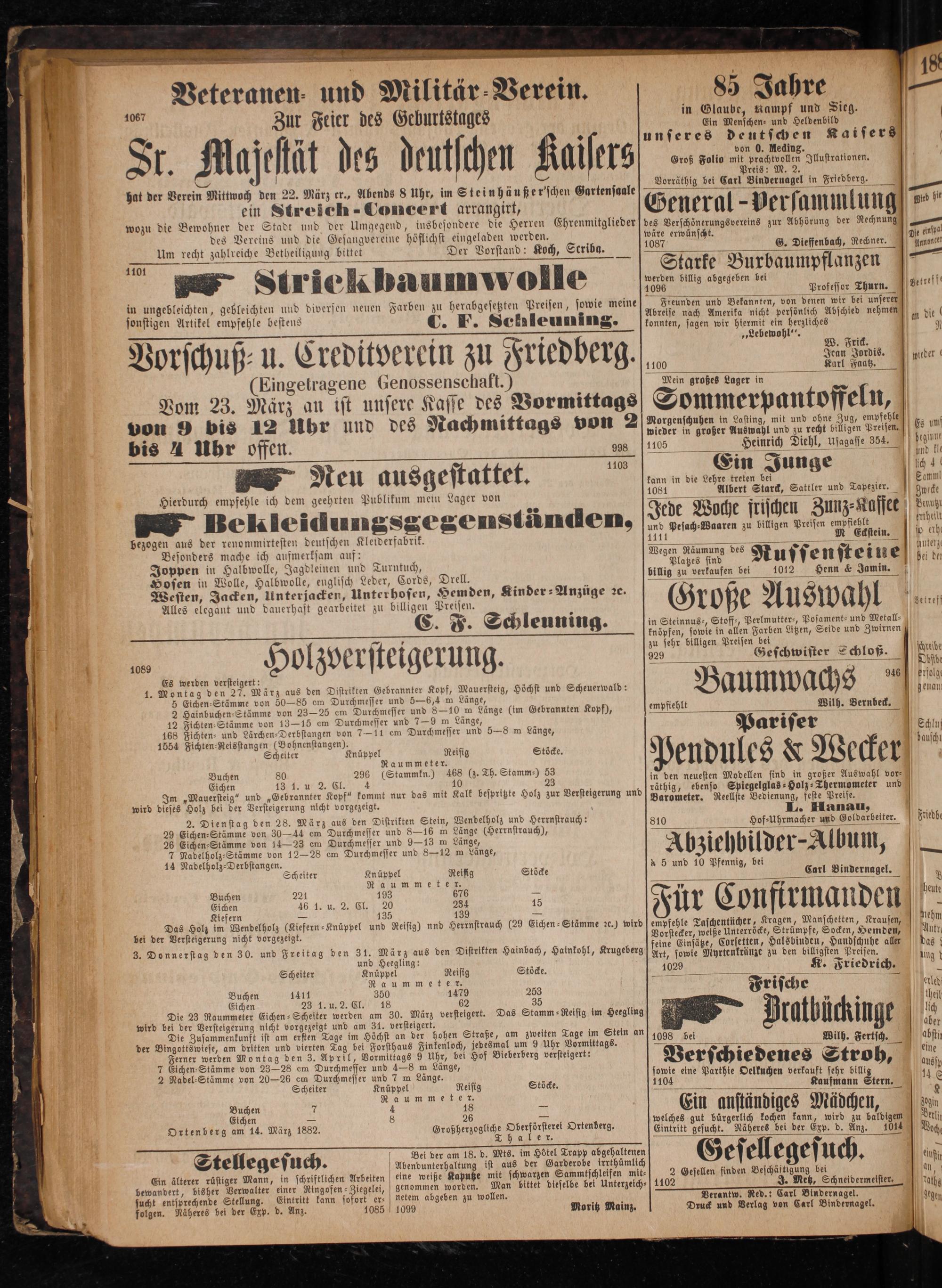 Scheiter Knüppel Reisig Stöcke. Ra ummet er. Buchen 70 4 18— Eichen— 26 559 Ortenberg am 14. März 1882. Großherzogliche Oberförsterei Ortenberg. Thaler. 0 Bei der am 18. d. Mts. im Hötel Trapp abgehaltenen Stellegesuch. Abendunterhaltung ist aus der Garderobe irrthümlich