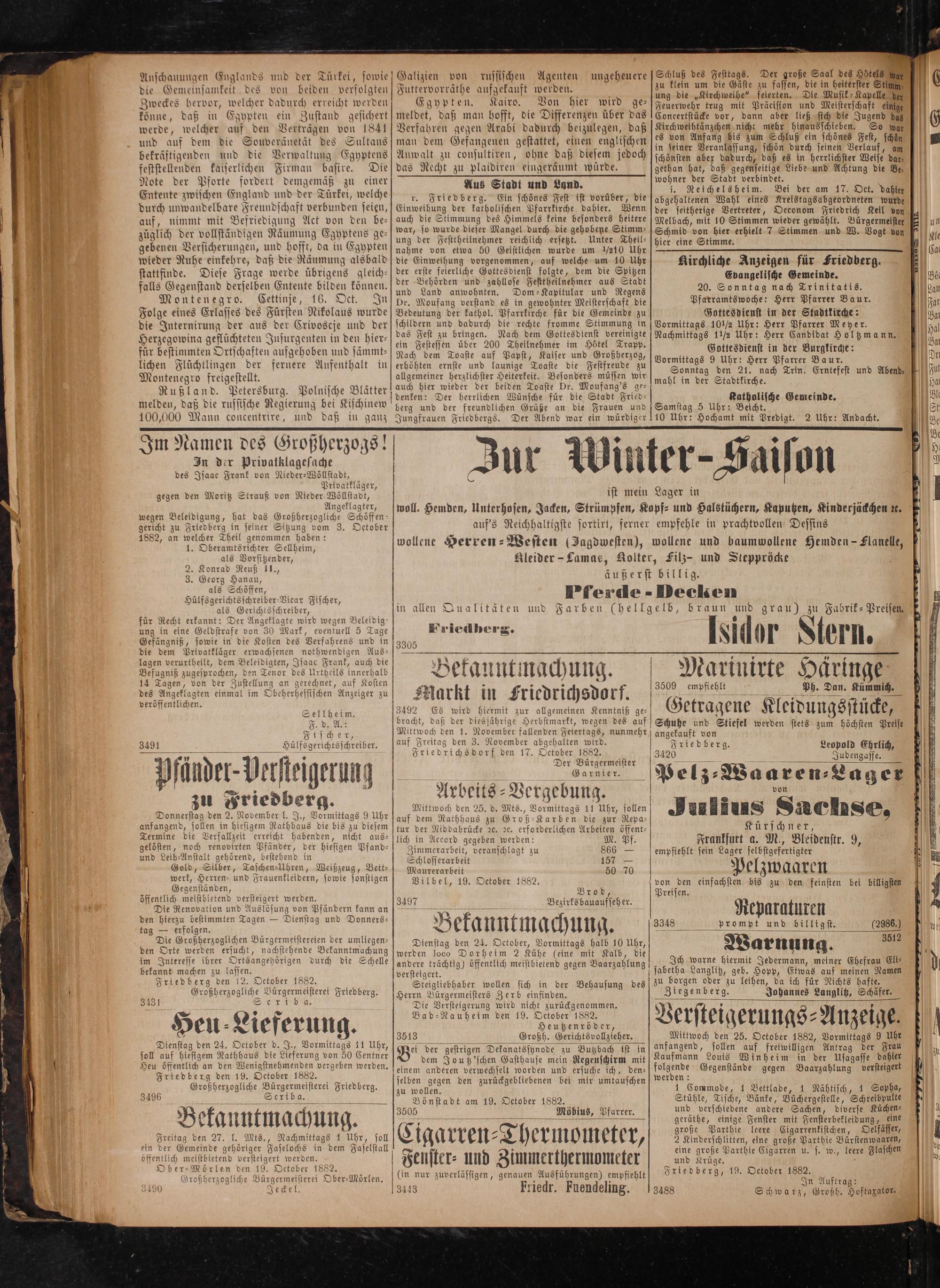 Friedberg den 19. October 1882. Großherzogliche Bürgermeisterei Friedberg.