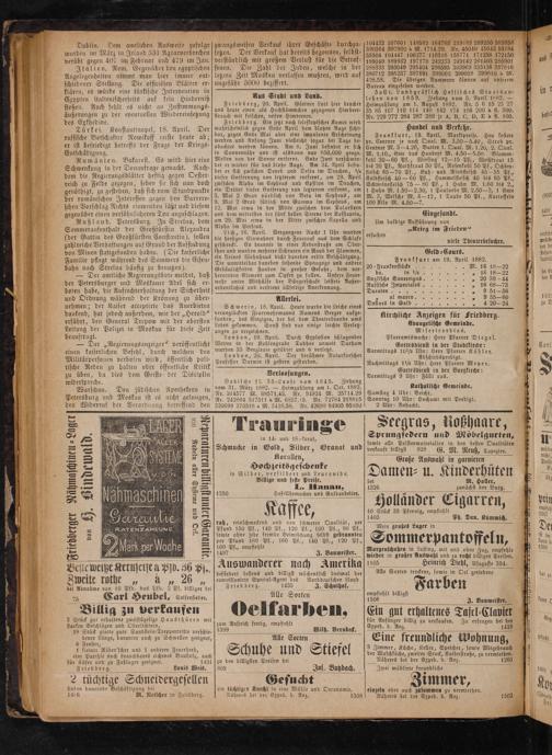 Kirchliche Anzeigen für Friedberg. Evangelische Gemeinde. Misericordias. Pfarramtswoche: Herr Pfarrer Diegel. Gottesdienst in der Stadtkirche: Vormittags 10½ Uhr: Herr Pfarrer Köhler. Abschiedspredigt. Nachmittags 1¼⁰ Uhr: Herr Pfarrer Meyer.