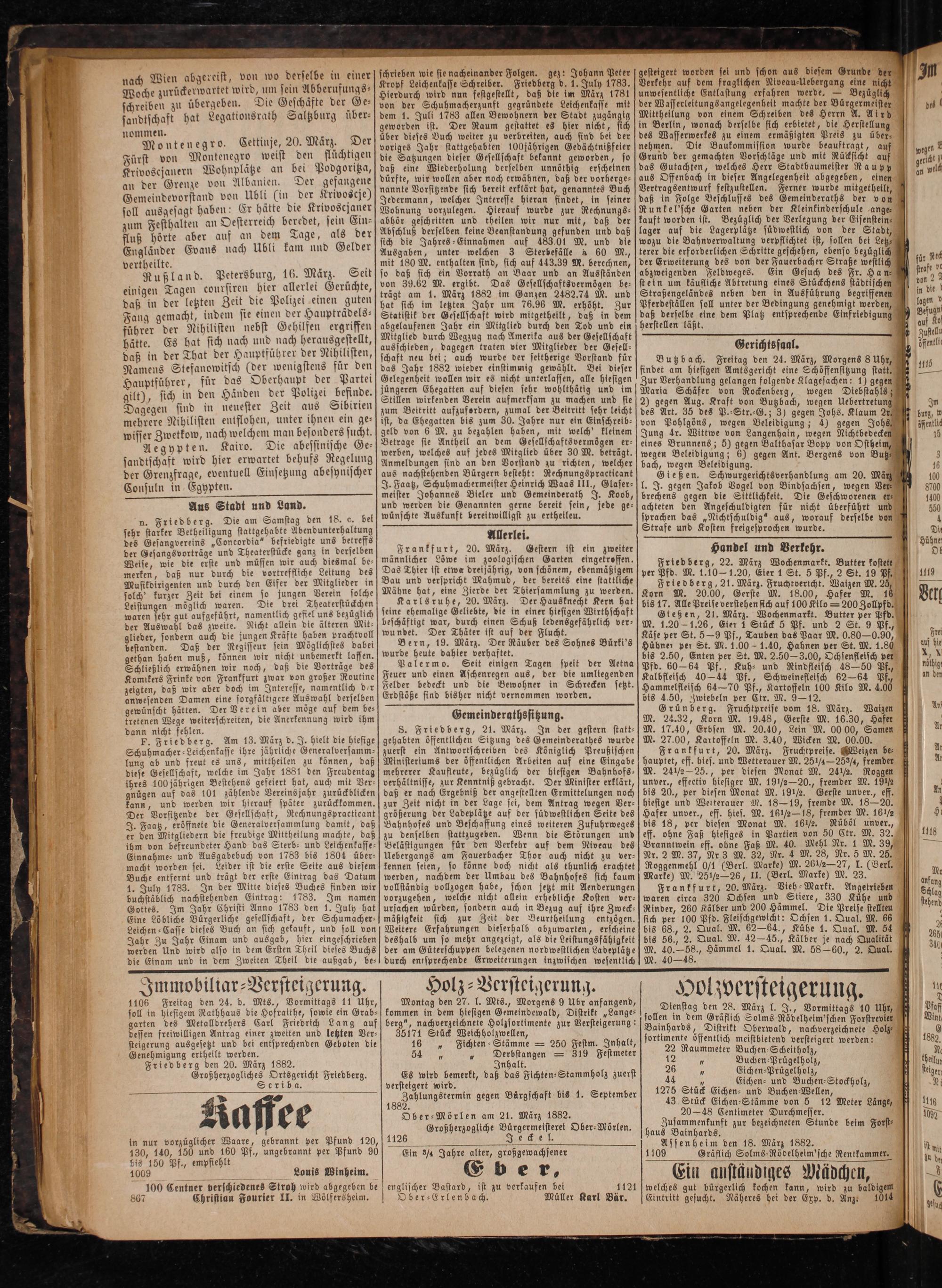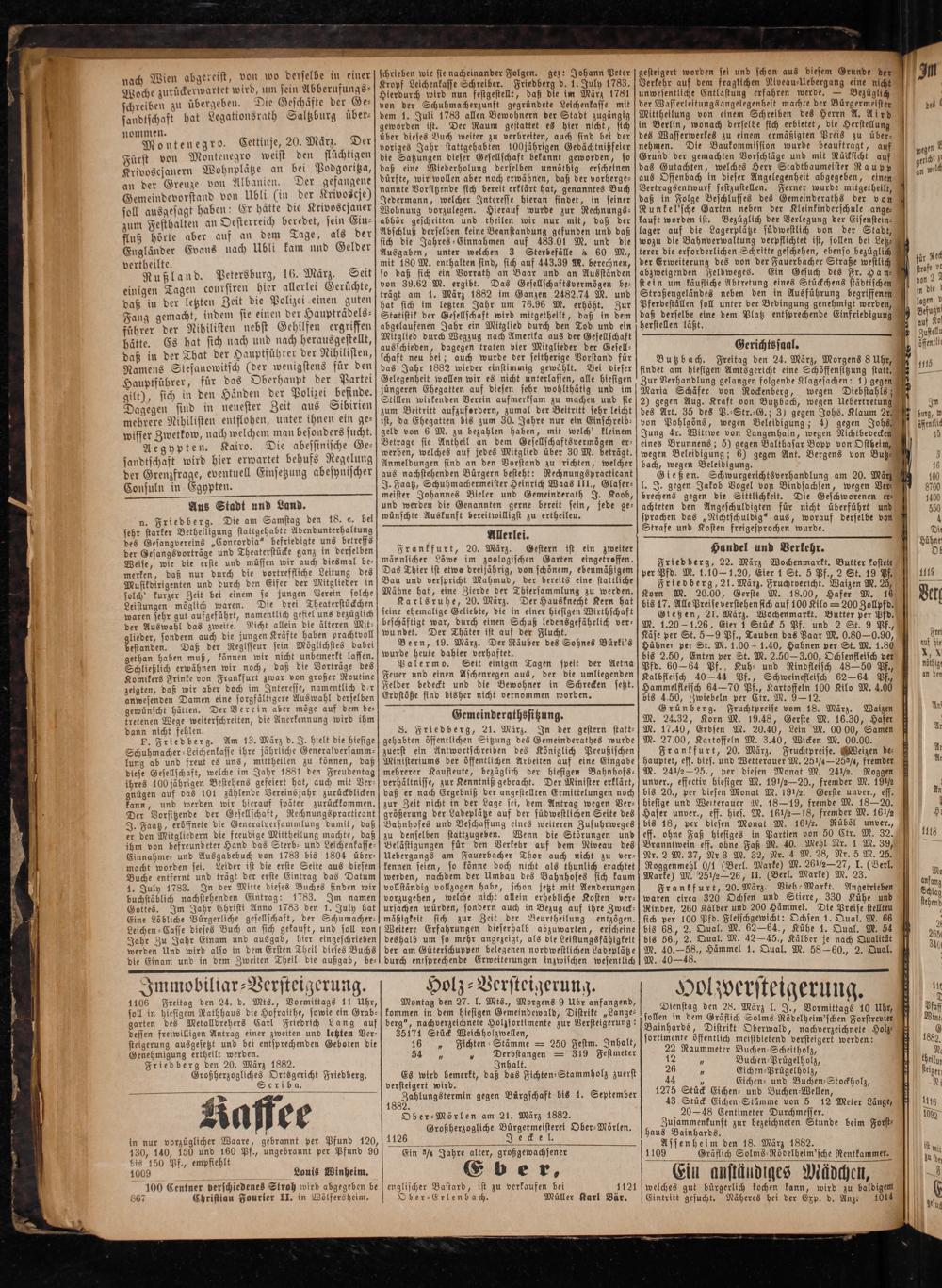Genehmigung ertheilt werden. Friedberg den 20. März 1882. Großherzogliches Ortsgericht Friedberg. Seriba.