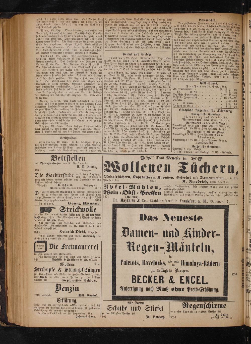 Kohlrabi 3—4 Pf., Spinat per Mahlzeit 25 Pf., Rosen⸗ 1 Frankfurt am 21. Sept. 1882.