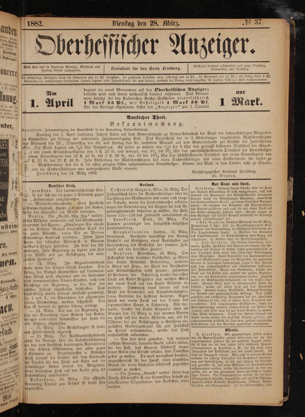 Friedberg den 24. Marz 1882.