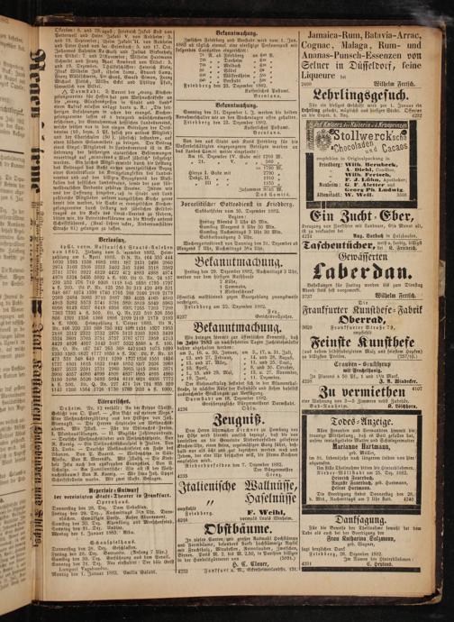 Friedberg, 26. Dezember 1882. Im Namen der Hinterbliebenen: