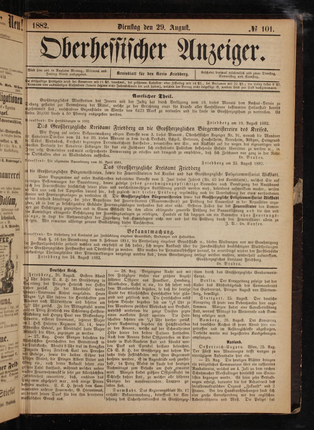 Großherzogliches Kreisamt Friedberg. Dr. Braden.