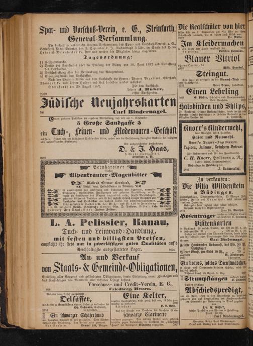 empfiehlt ihr stets nur in zuverlässigen guten Qualitäten auf's Reichhaltigste ausgestattetes Lager. 2625