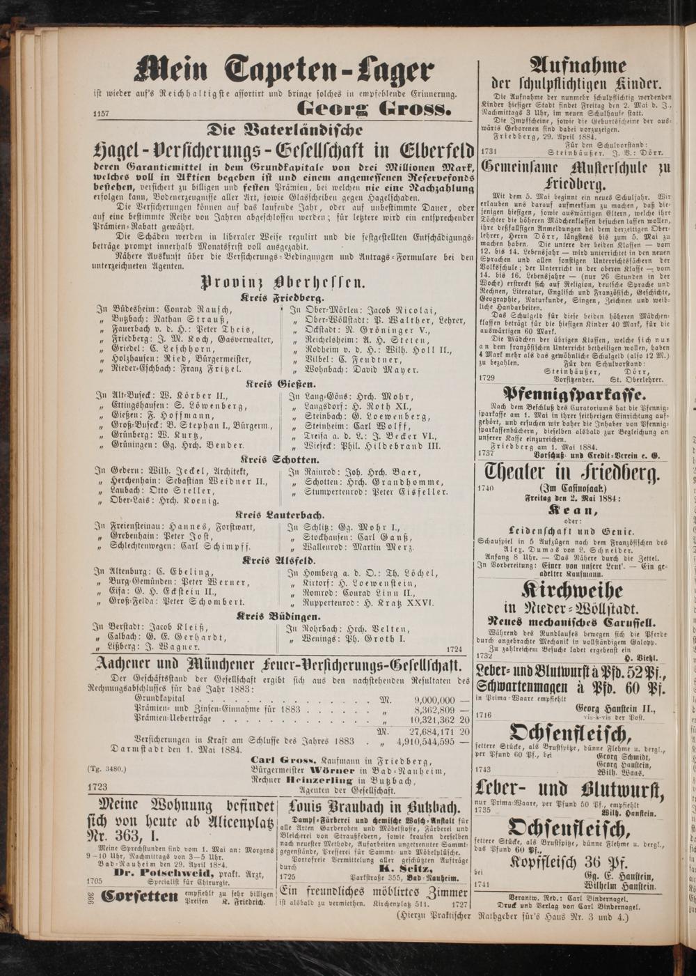 unserer Kasse einzureichen. Friedberg am 1. Mal 1884. 1737 Vorschuß und Credit⸗Verein e. G.