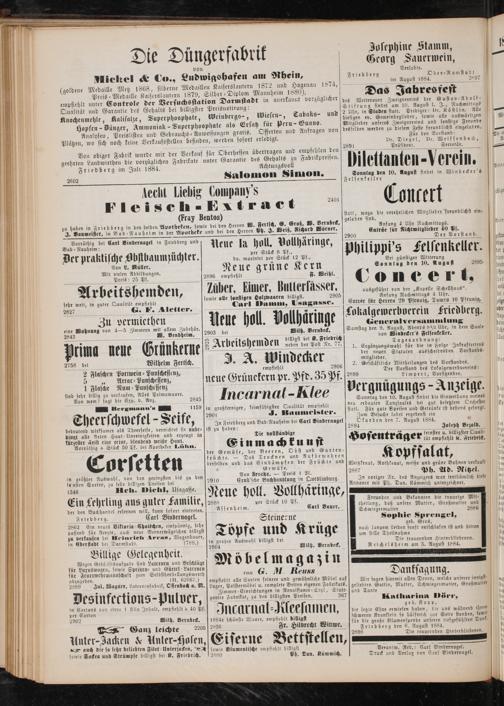 statt. Für gute Speisen und Getränke ist bestens gesorgt. Zum Besuche ladet ergebenst ein Okarben den 7. August 1884.* 2894 Joseph Bezold.