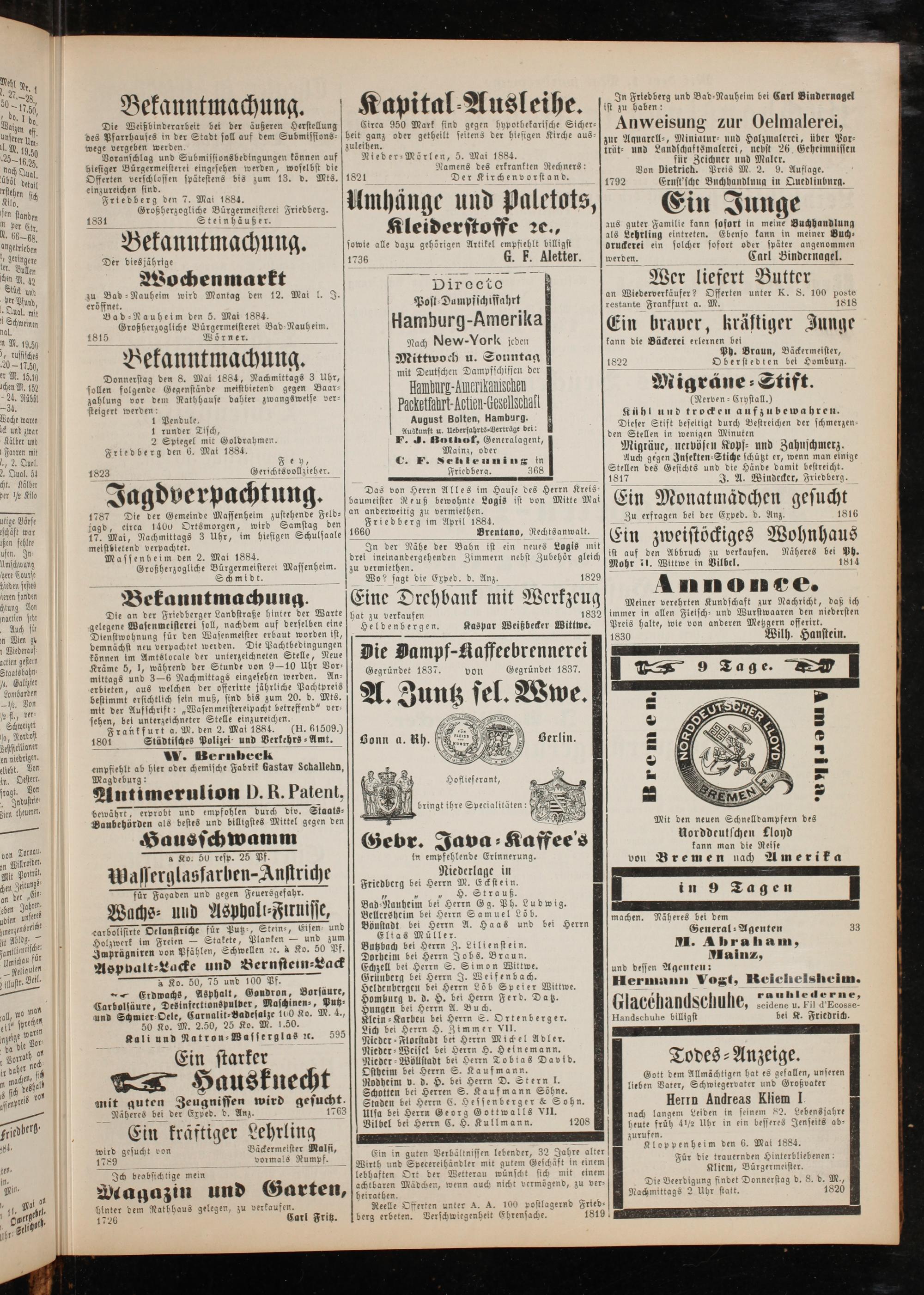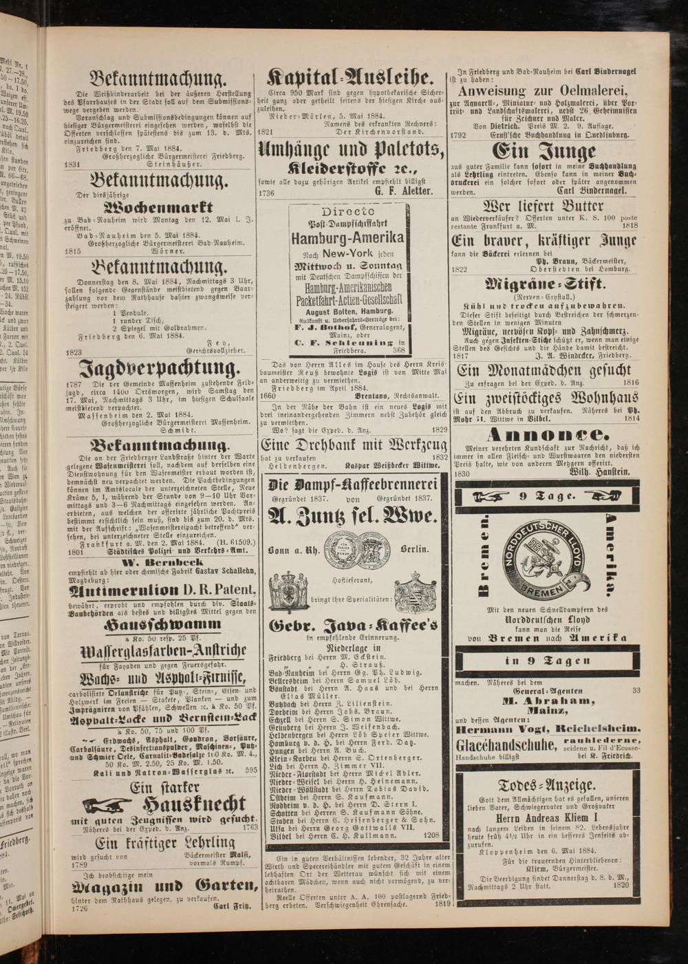 Friedberg den 7. Mai 1884.
