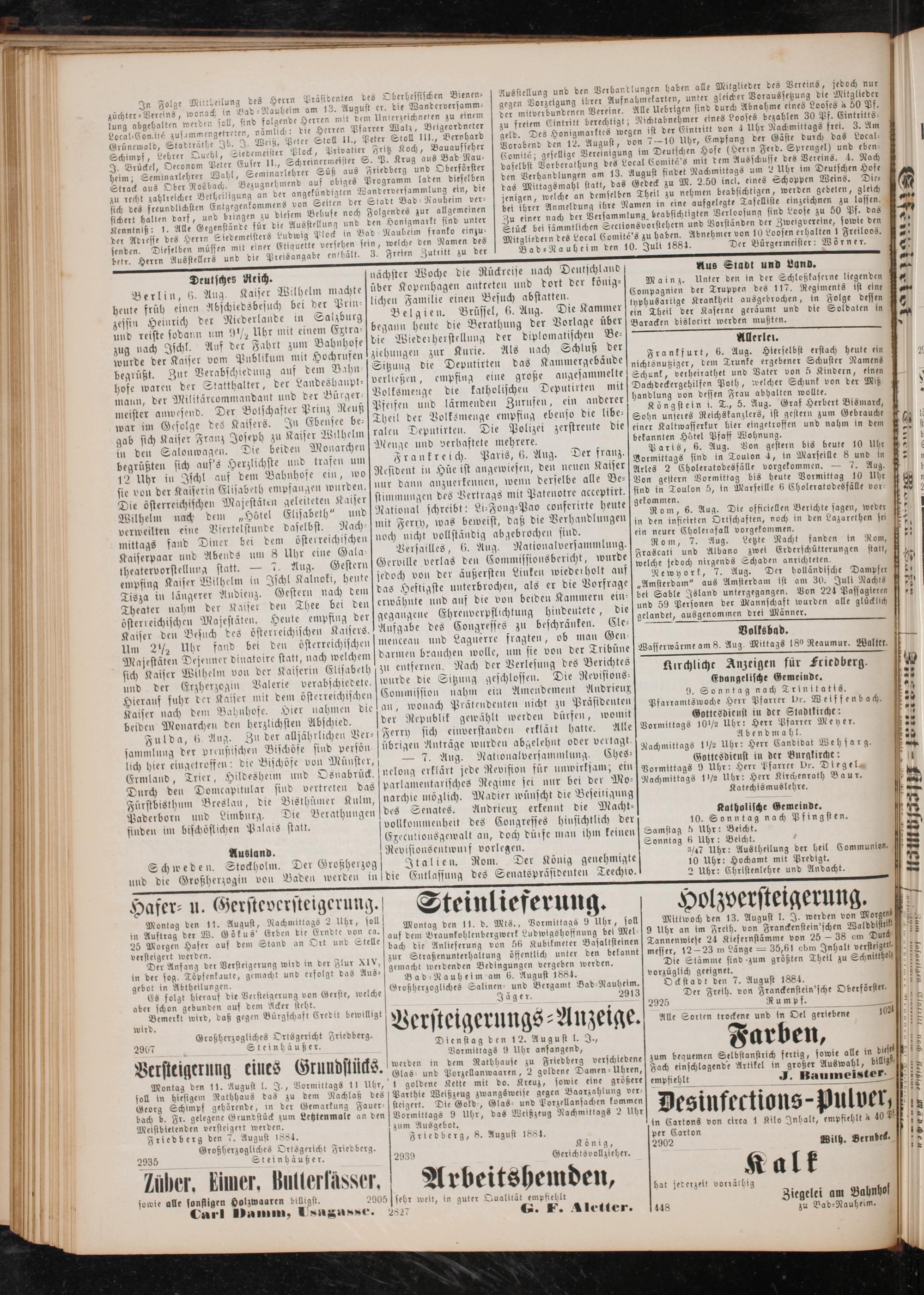 zum Ausgebot. Friedberg, 8. August 1884. König, Gerichtsvollzieher.