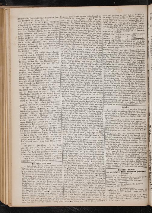Frankfurt, 6. Dez. Der vorgestern Nachmittag von Köln hierher abgegangene Schnellzug wurde bei der Ausfahrt aus dem Kölner Bahnhof von einem Güter— zuge angefahren, Zuges zertrümmerte, digt wurde.