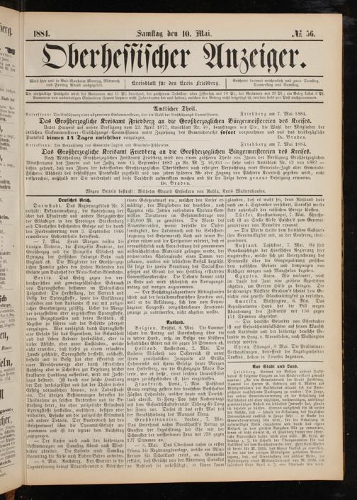 Friedberg am 7. Mai 1884.