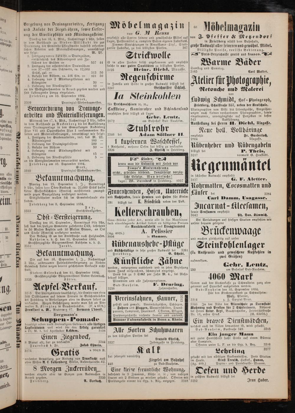 ignissen, einer Drainageanlage in den Gemarkungen Rockenberg upfung)„Flur Il und Oppershofen Flur 1 vorkommenden Ar- der unter⸗ 2 betten und Materfallieferungen, veranschlagt wie folgt: deptember 1. Fertigung der Grabenarbeiten, inel. des M. Pf. „ Röhrenlegens 160— 1 2. Lleferung der Drainziegelröhren 200— . 1 3. Anfuhr der Röhren 0 70 4. Lieferung eines Mündungssteins mit ä Elsengitter 1 0 5. Lieferung der Nivellirpfähle 5— 1 2 an die Wenigstnehmenden veraccordirt werden. ge 2 Friedberg am 10. September 1884. 0„ Greb, 1 12 3810 Provinzial Wiesenbaumeister. von allen 5 5 5 le. Bekanntmachung. seeische 0 Montag den 15. September l. J., Vormittags ikstelligen z 9 Uhr, sollen loco Ober-Ros bach ca. 22,000 Stück halbe dienen. kleine Wasserfläschchen öffentlich meistbletend zwangs— —— weise gegen Baarzahlung versteigert werden.