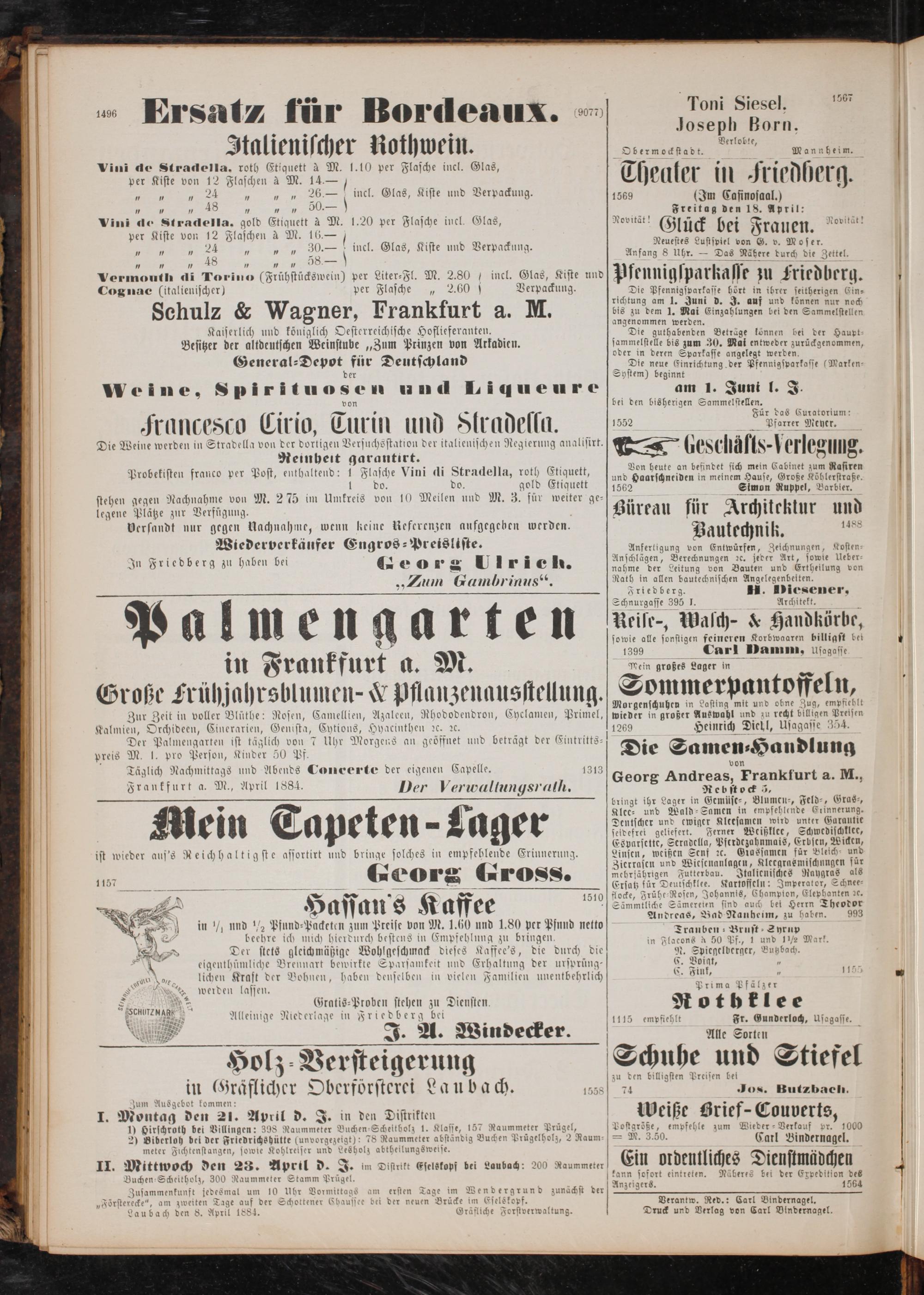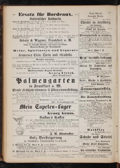 Frankfurt a. M., April 1884. Der FVerwaltungsvalli.