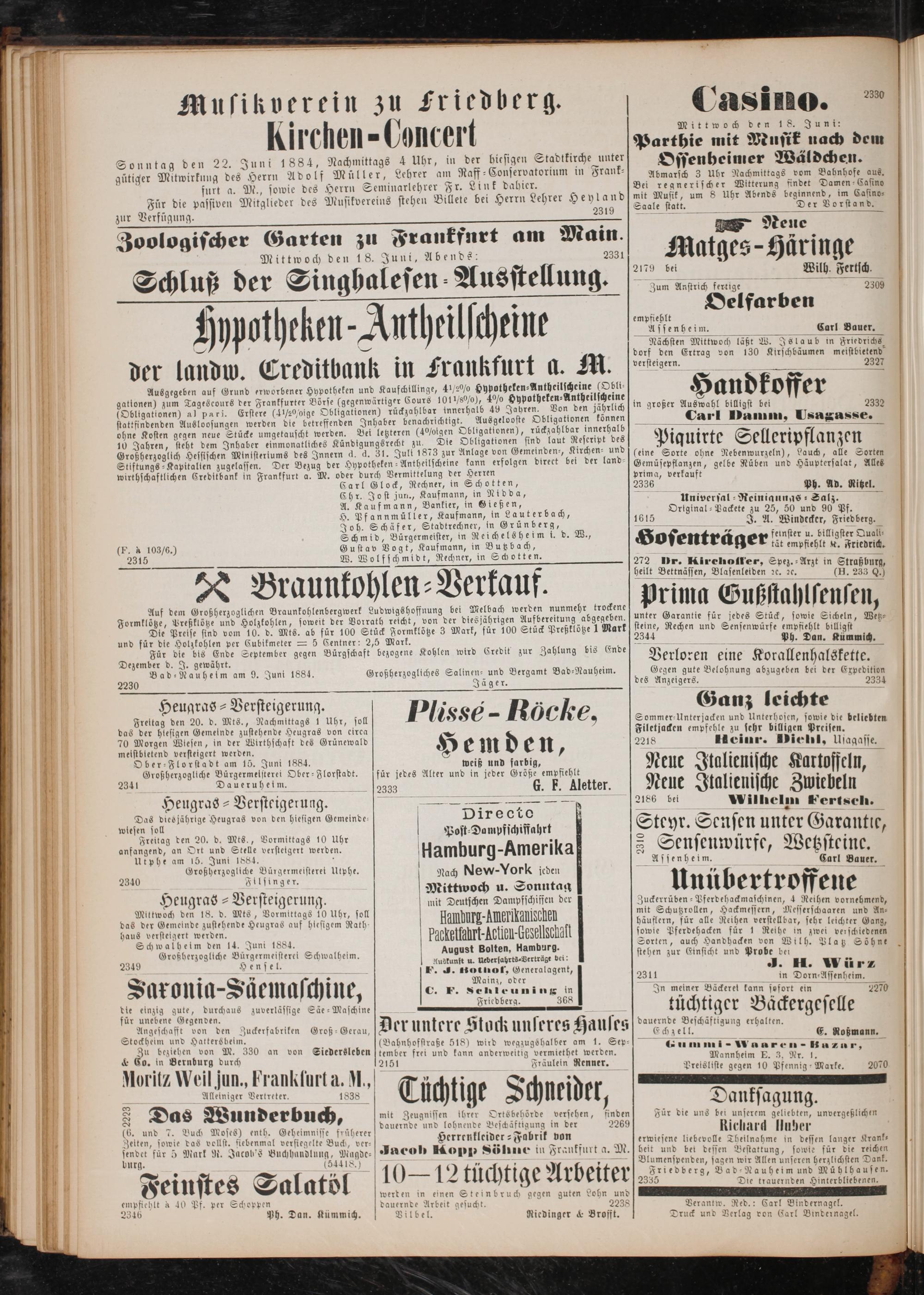 Verantw. Red.: Carl Bindernagel. Druck und Verlag von Carl Bindernagel.