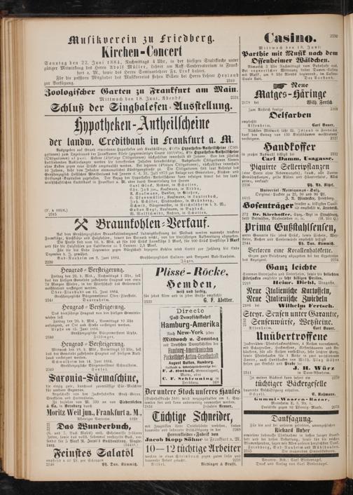 Heugras-Versteigerung. Das diesjährige Heugras von den hiesigen Gemeinde wlesen soll Freitag den 20. d. Mts., Vormittags 10 Uhr anfangend, an Ort und Stelle versteigert werden. Utphe am 15. Juni 1884. 8 Großherzogliche Bürgermeisterei Utphe. 2340 Filsinger. 8 70 e Heugras-⸗ Versteigerung. mit Deutschen Dampfschiffen der Mittwoch den 18. d. Mts, Vormittags 10 Uhr, soll