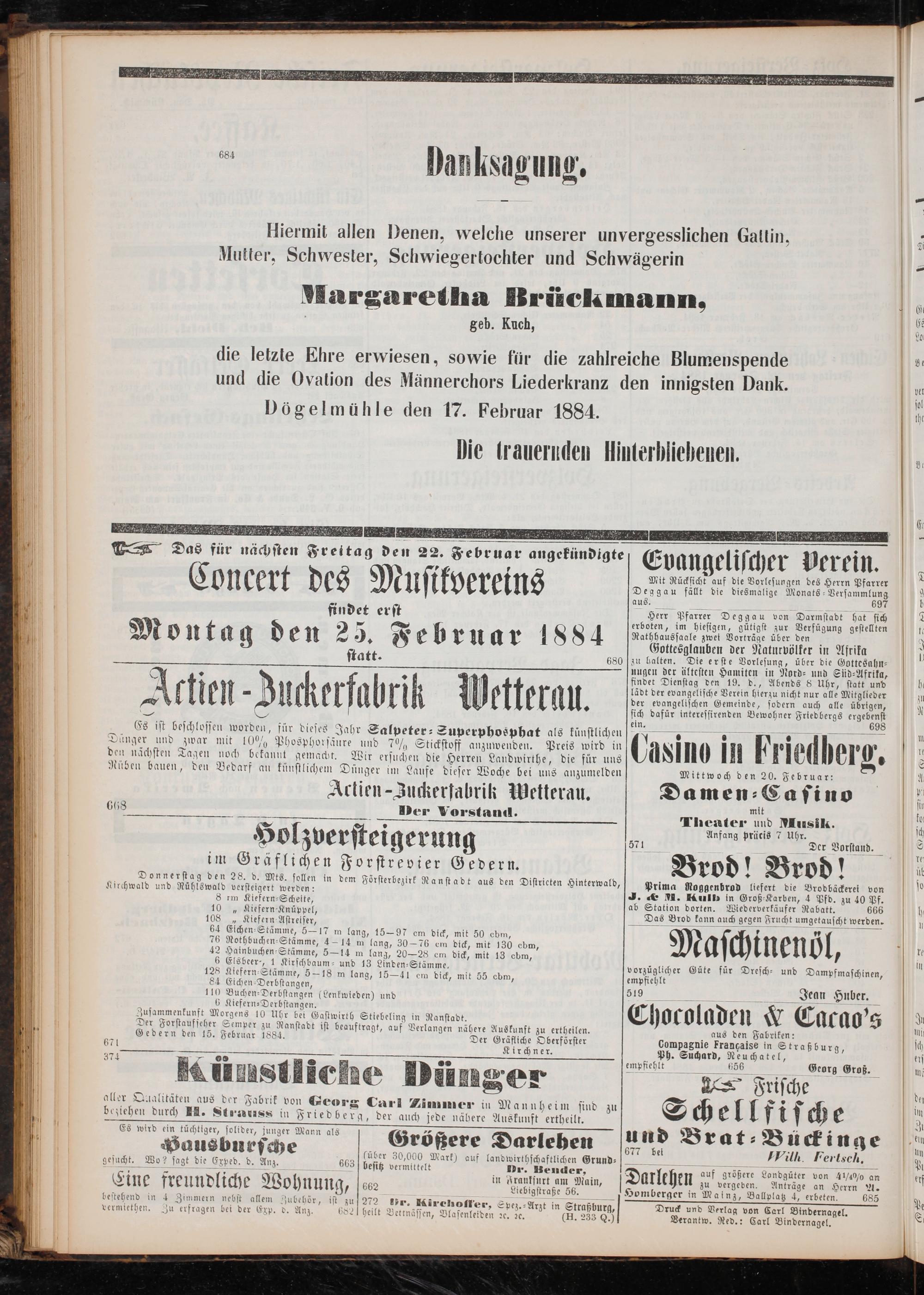 Dögelmühle den 17. Februar 1884.