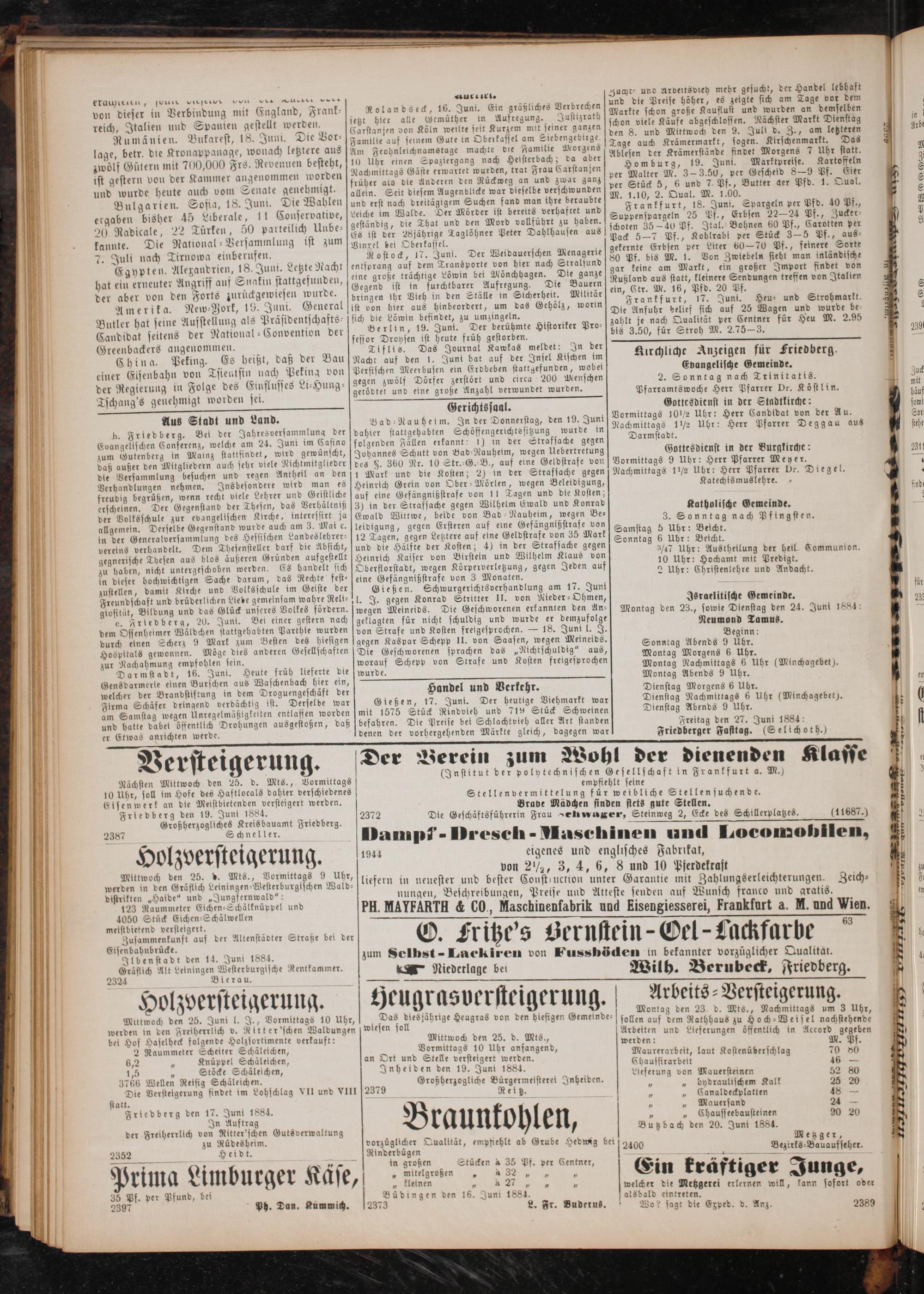Elsenwerk an die Meistbietenden versteigert werden. Frledberg den 19. Juni 1884. Großherzogliches Kreisbauamt Friedberg. Schneller.