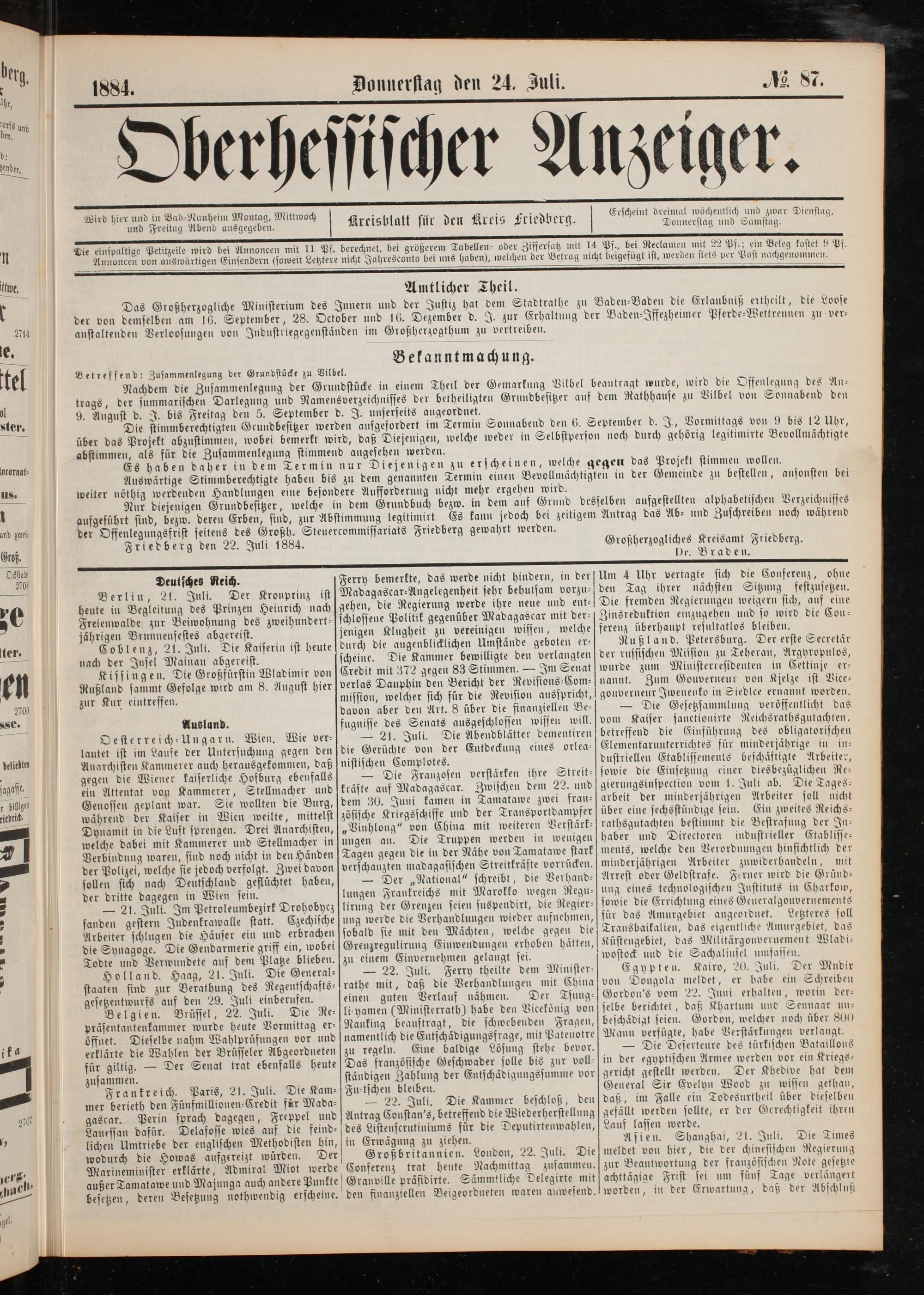 Friedberg den 22. Juli 1884.