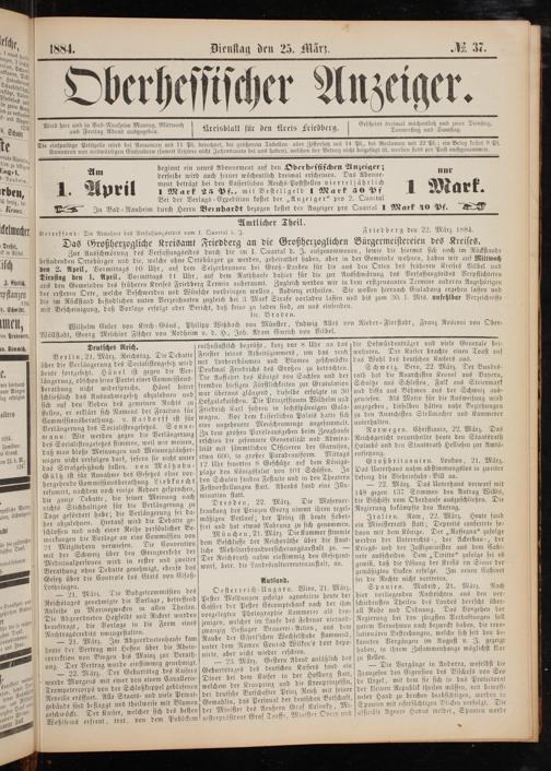 Friedberg den 22. März 1884.