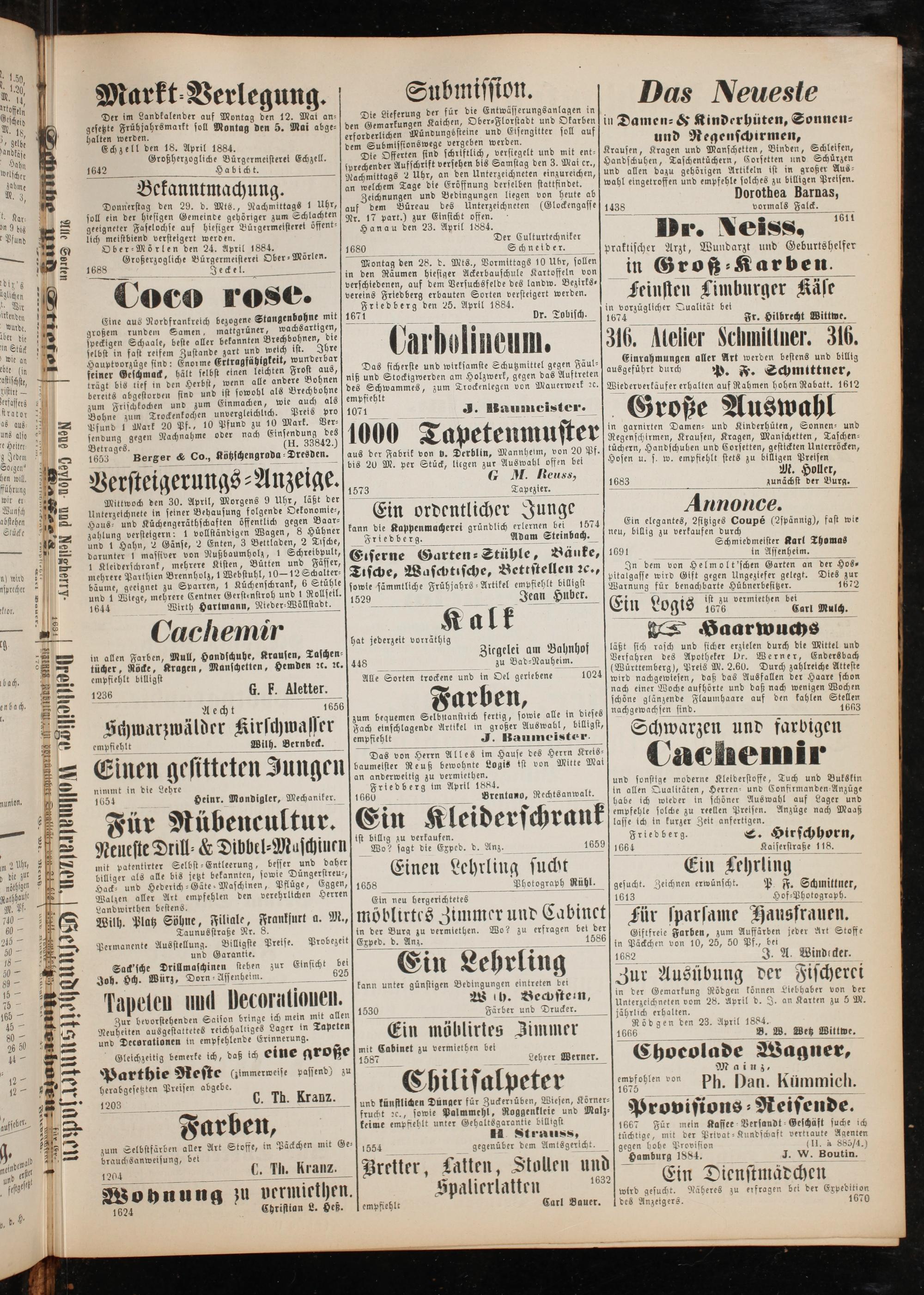 Friedberg den 25. April 1884. Dr. Tobisch.