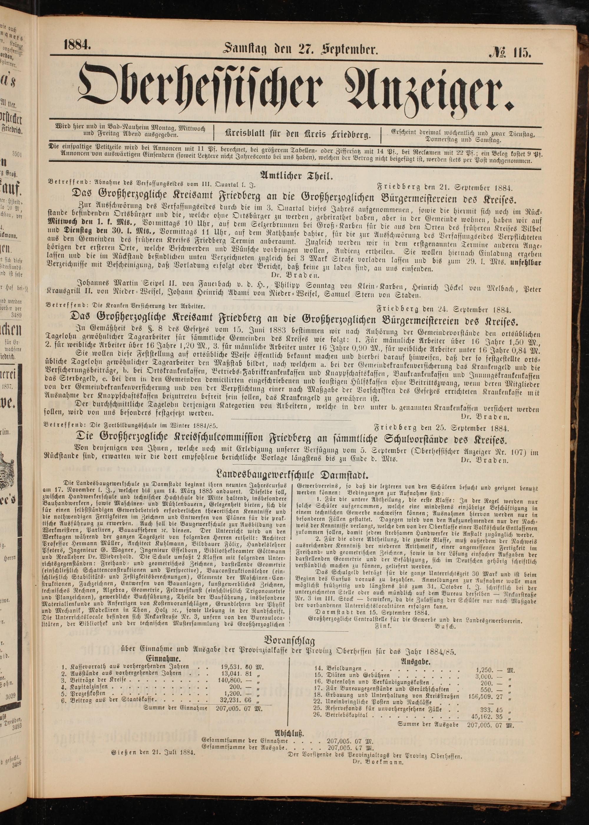 rer Verfügung vom 5. September(Oberhessischer Anzeiger Nr. 107) im längstens bis zu Ende d. Mts. Dr. Braden.