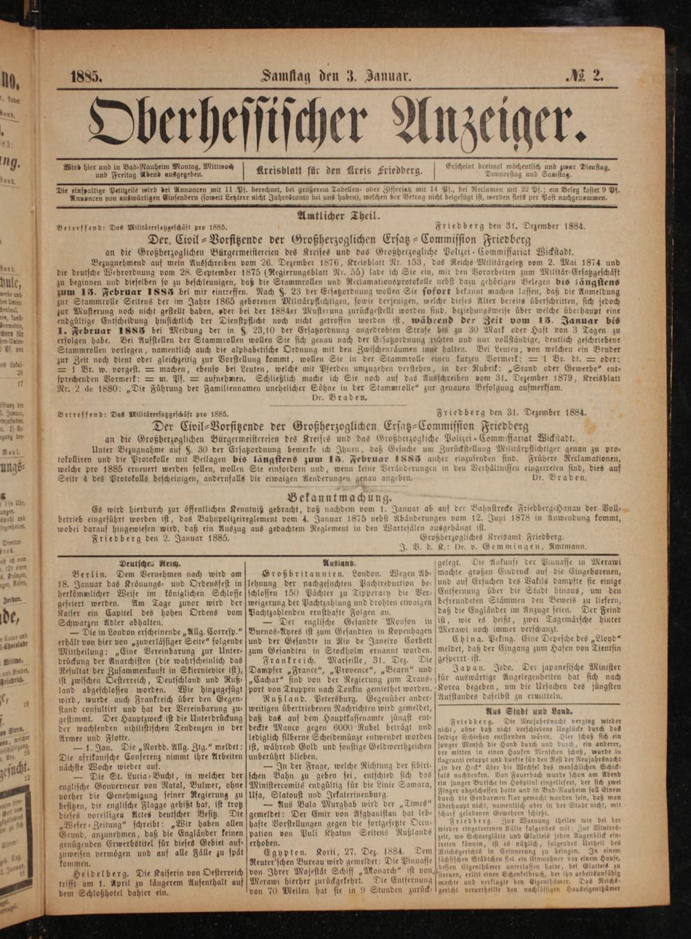 Friedberg den 2. Januar 1885.