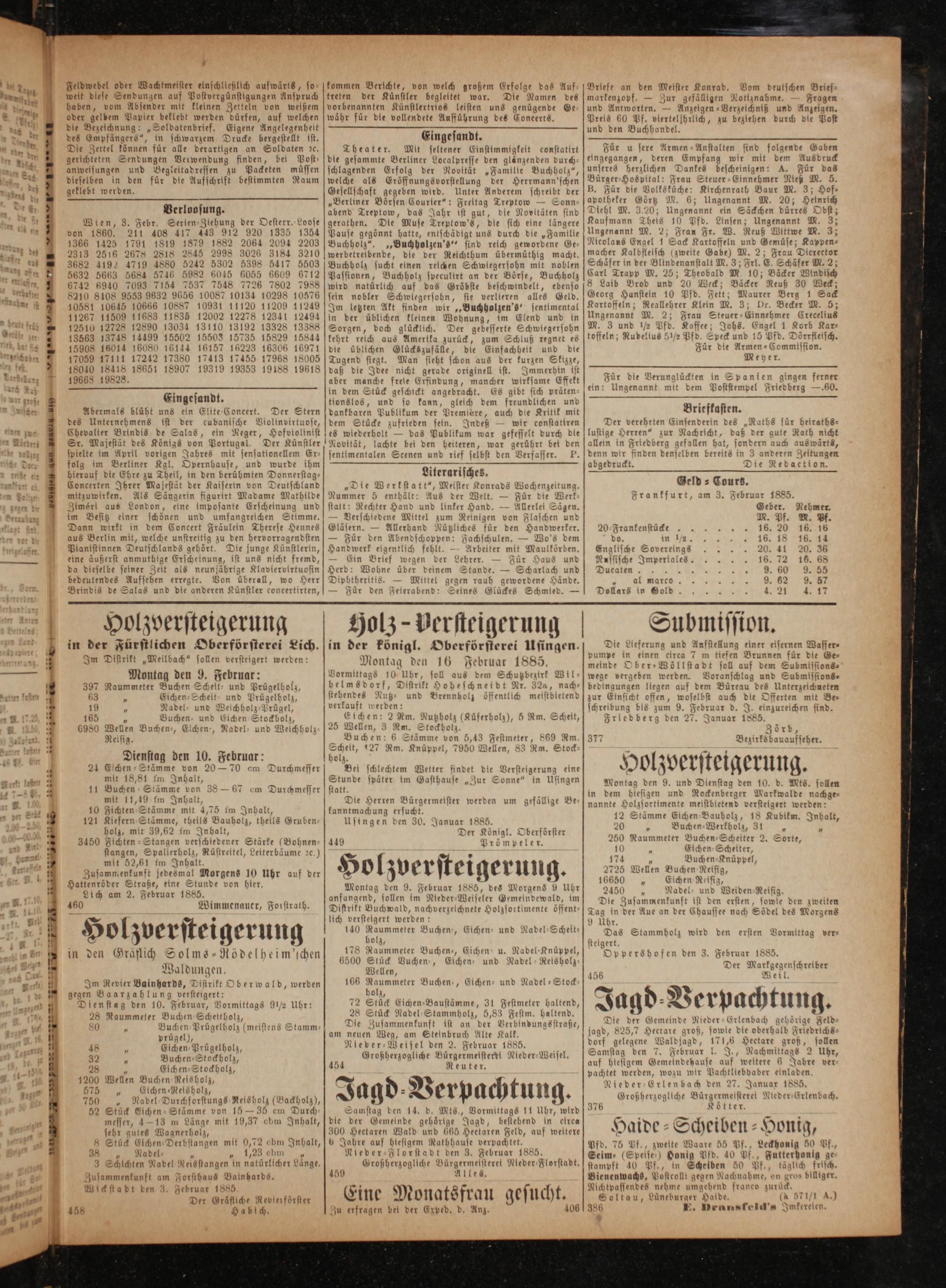 Usingen den 30. Januar 1885. Der Königl. Oberförster Prömpeler.