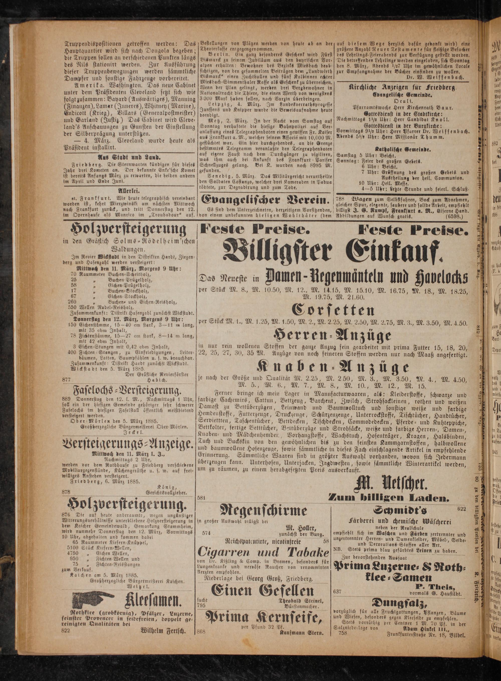 Mobiliargegenstände, Küchengeräthe u. s. w. auf fret— williges Ansteben versteigert. Friedberg, 6. März 1885. König, 878 Gerichtsvollzieher.