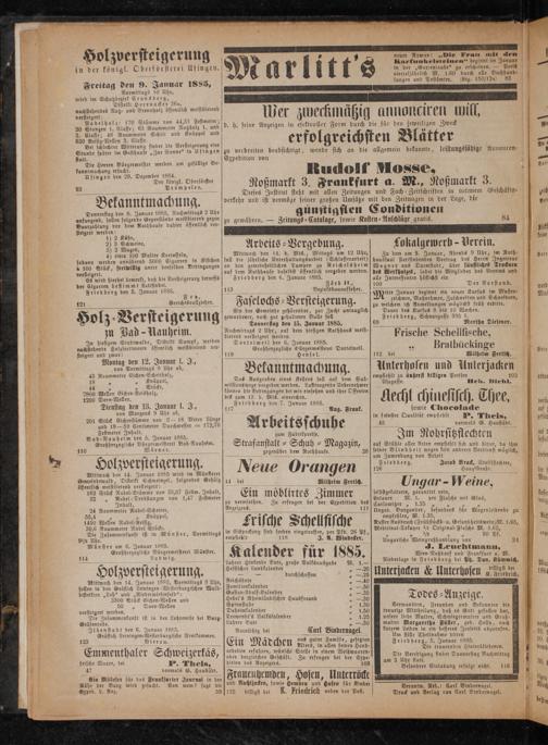 Freitag den 9. Januar 1885, Vormittags 10 Uhr, wird im Schutzbezirk Cransberg, Distrikt Herrnacker 36a, nachstehendes Nutz- und Brennholz öffentlich meistbietend versteigert: