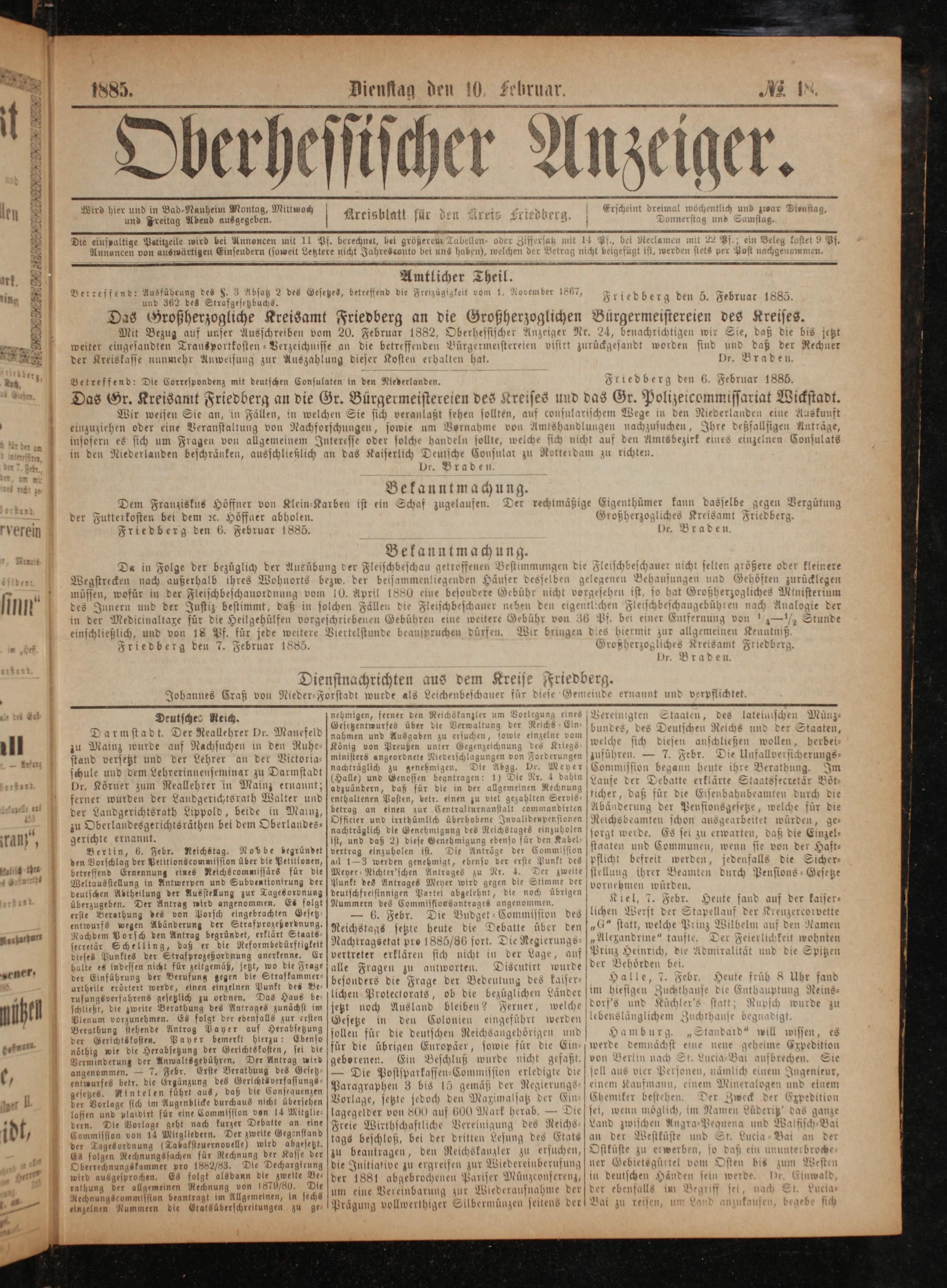 dies hiermit zur allgemeinen Kenntniß Großherzogliches Kreisamt Friedberg. Dr. Braden.