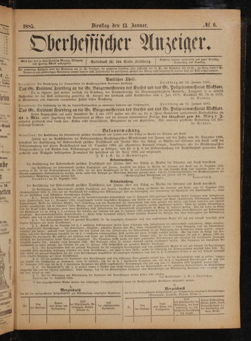 in Erinnerung und erwarten eintretenden Falles dessen Beachtung. Dr. Braden. Betreffend: Die Einsendung der für die Landes⸗Watsenanstalt zu erhebenden Collecten und üchsengelder. Friedberg am 10. Januar 1885.