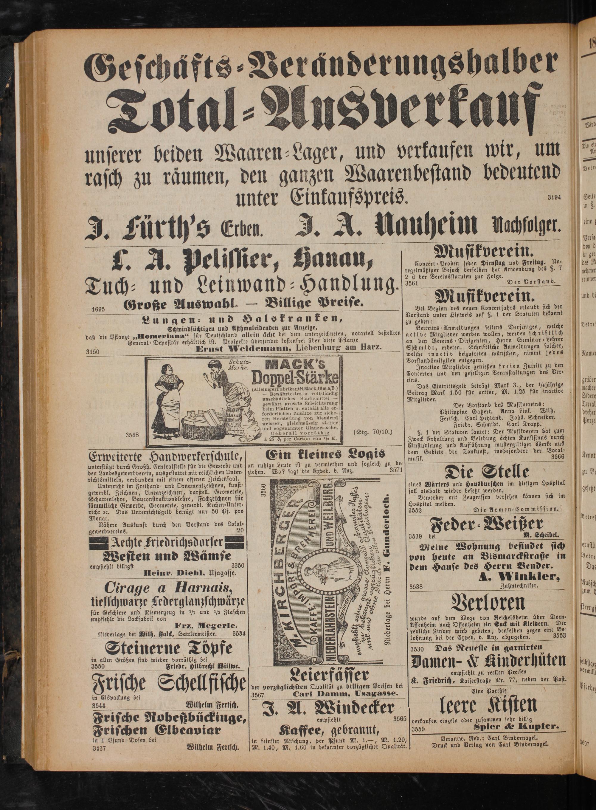 Verantw. Red.: Carl Bindernagel. Druck und Verlag von Carl Bindernagel,