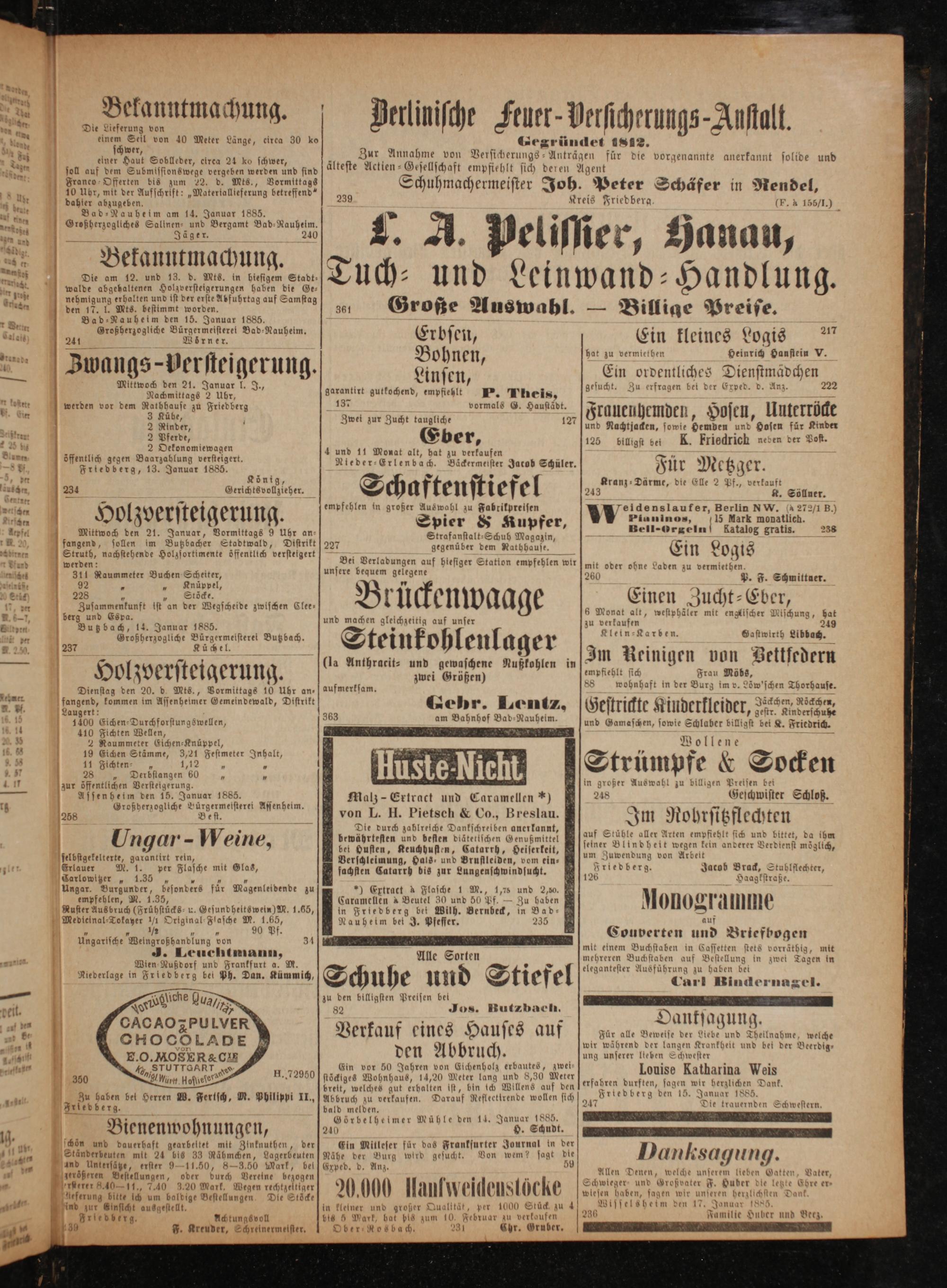 Louise Katharina Weis erfahren durften, sagen wir herzlichen Dank. Friedberg den 15. Januar 1885.
